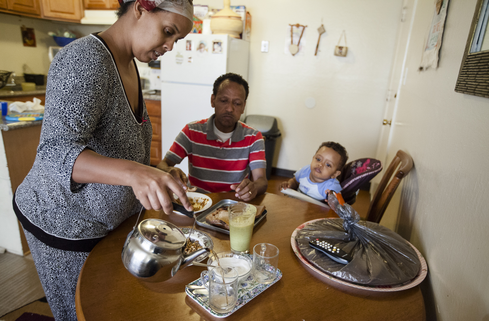 - Adonai, 1, waits for his mother to finish clearing the breakfast table. The couple gave their younger children Biblical names, representative of their Christian faith. They sometimes attend Tewahdo Greek Orthodox Church, which has an active Eritrean congregation.