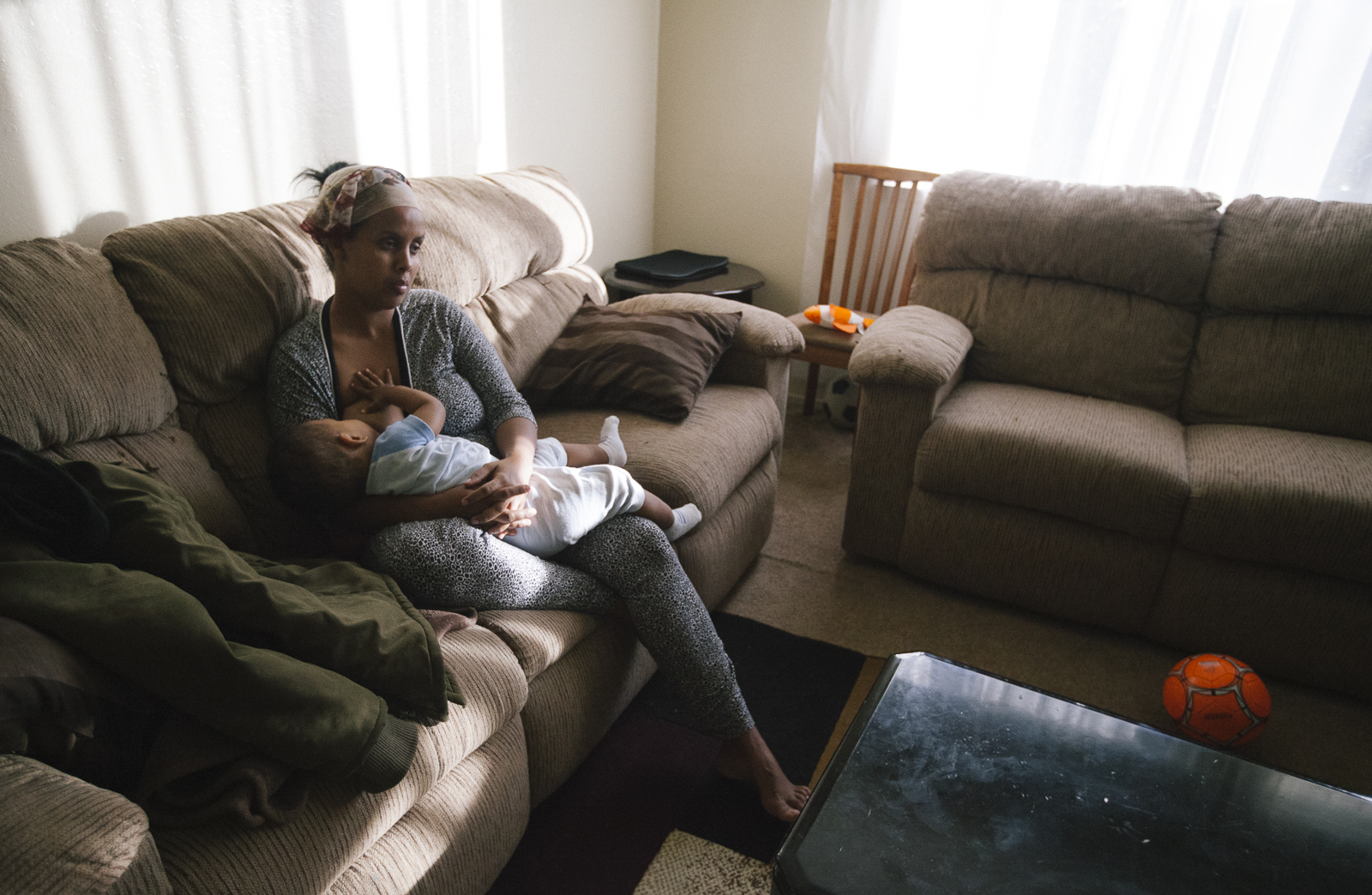 - As her husband leaves for the day, Helen nurses Adonai. She will spent the day in the apartment or running errands, taking care of her son, cleaning, and waiting for the other children to come back from school, while her husband works at his barber shop.