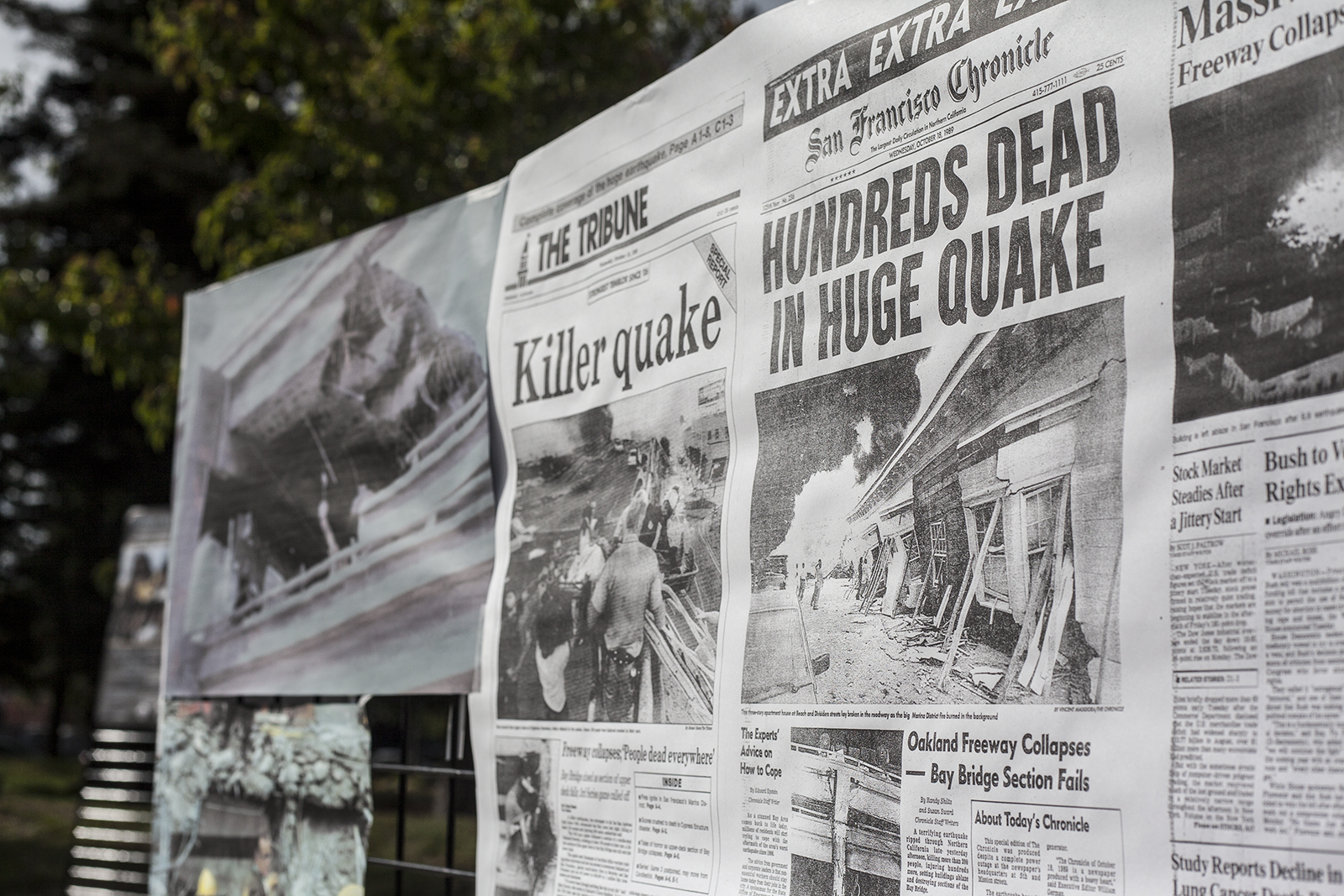 - 1989 newspaper clippings are exhibited at Cypress Memorial Park, as part of the 25th Anniversary of the Loma Prieta Earthquake.