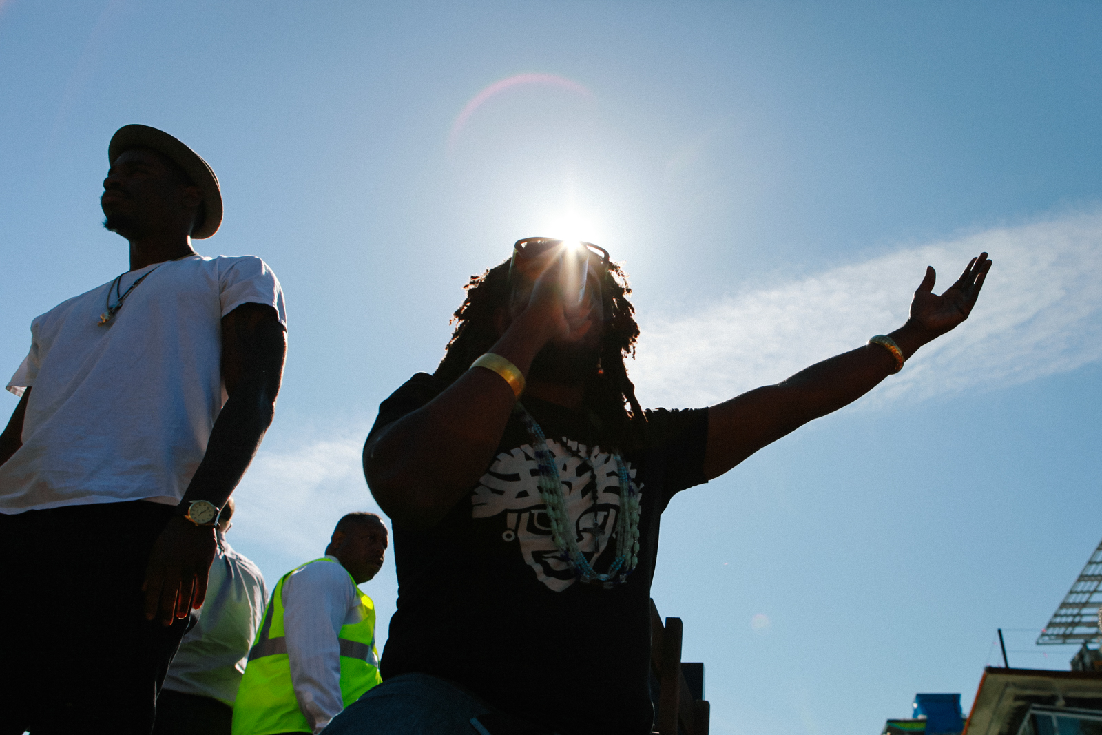 - A performer rallies the crowd at UC Berkeley’s Sproul Plaza. (Photo by Bonnie Chan)
