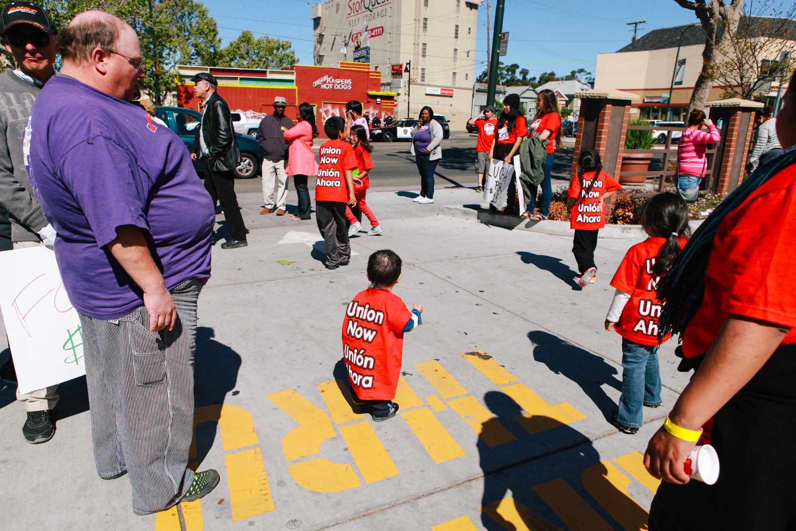 In Richmond, about 100 people demonstrated inside a Taco Bell on Barrett Avenue at 23rd Street, where employees tried to continue serving customers while the crowd called on them to walk out. Chanting “We’ll be back!” the protesters left the building and marched around the block to continue protesting inside a McDonald’s franchise. It was the first major fast food workers’ demonstration of its kind in Richmond; Richmond fast food workers have previously participated in actions in Oakland and Sacramento, but have never before organized actions in their own city.