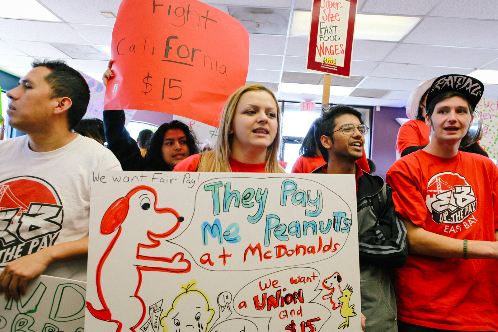 Fast food and low-wage workers in Oakland, Richmond and Berkeley joined a workers’ strike dubbed “Fight for $15” on Wednesday, continuing a two-year-long campaign that calls on fast food chains to institute a $15 minimum wage and the right for workers to unionize without reprisal.