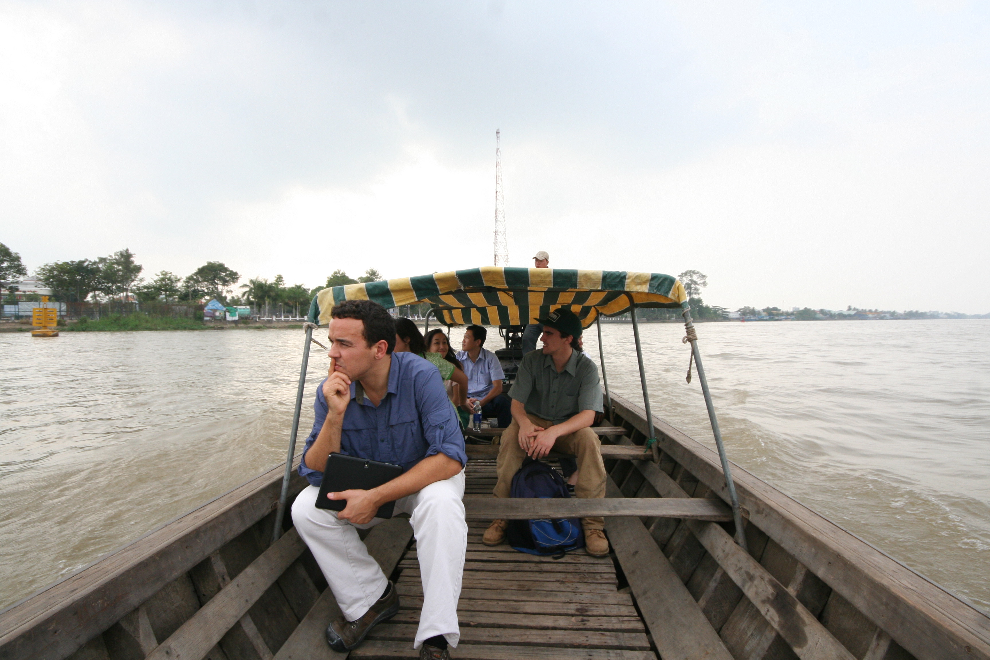 - The CAL-RAE team traveling with Vietnamese partners in Vietnam’s Mekong Delta (photo by CAL_RAE Team.)