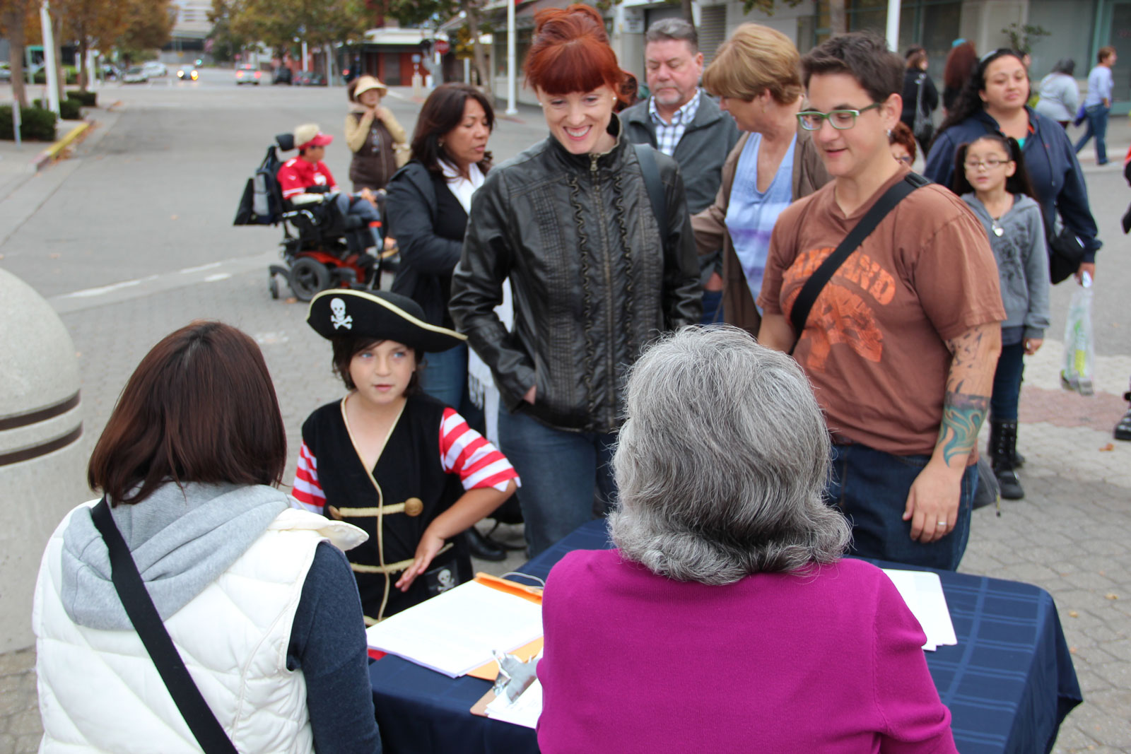 “Arrrrrr!” growled seven-year-old Simon Fitch-Jenett, brandishing a foam sword while also sporting a buccaneer’s vest, striped shirt and three-cornered hat. He introduced himself as “Blackbeard,” and waited patiently for Susanne Di Lillo, a member of the North California Fleet of the Classic Yacht Association, to produce a boarding pass.