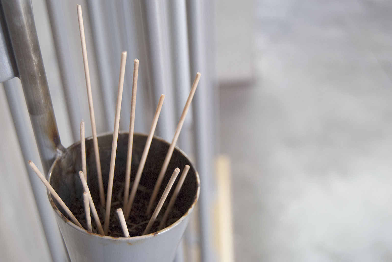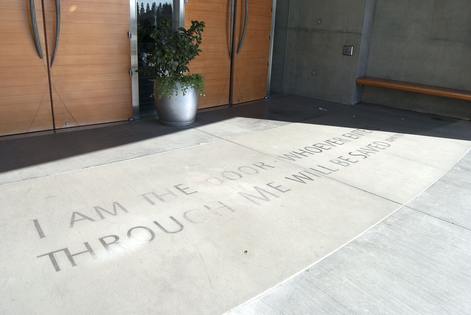 A man sits alone in one of the last pews at the Cathedral of Christ the Light.  The man, wearing a blue hooded sweatshirt, stares at the altar where at the center, a grand full body image of Jesus, which looks like a projection, overlooks the inside of the cathedral. The place is empty, but not completely silent. There is a soft, sustained ringing sound, but a man and two women silence it when they rush in. They immediately take out their cell phones and begin looking at the cathedral through their screens and take turns taking pictures of each other. Once they seem satisfied with the shots, they leave.