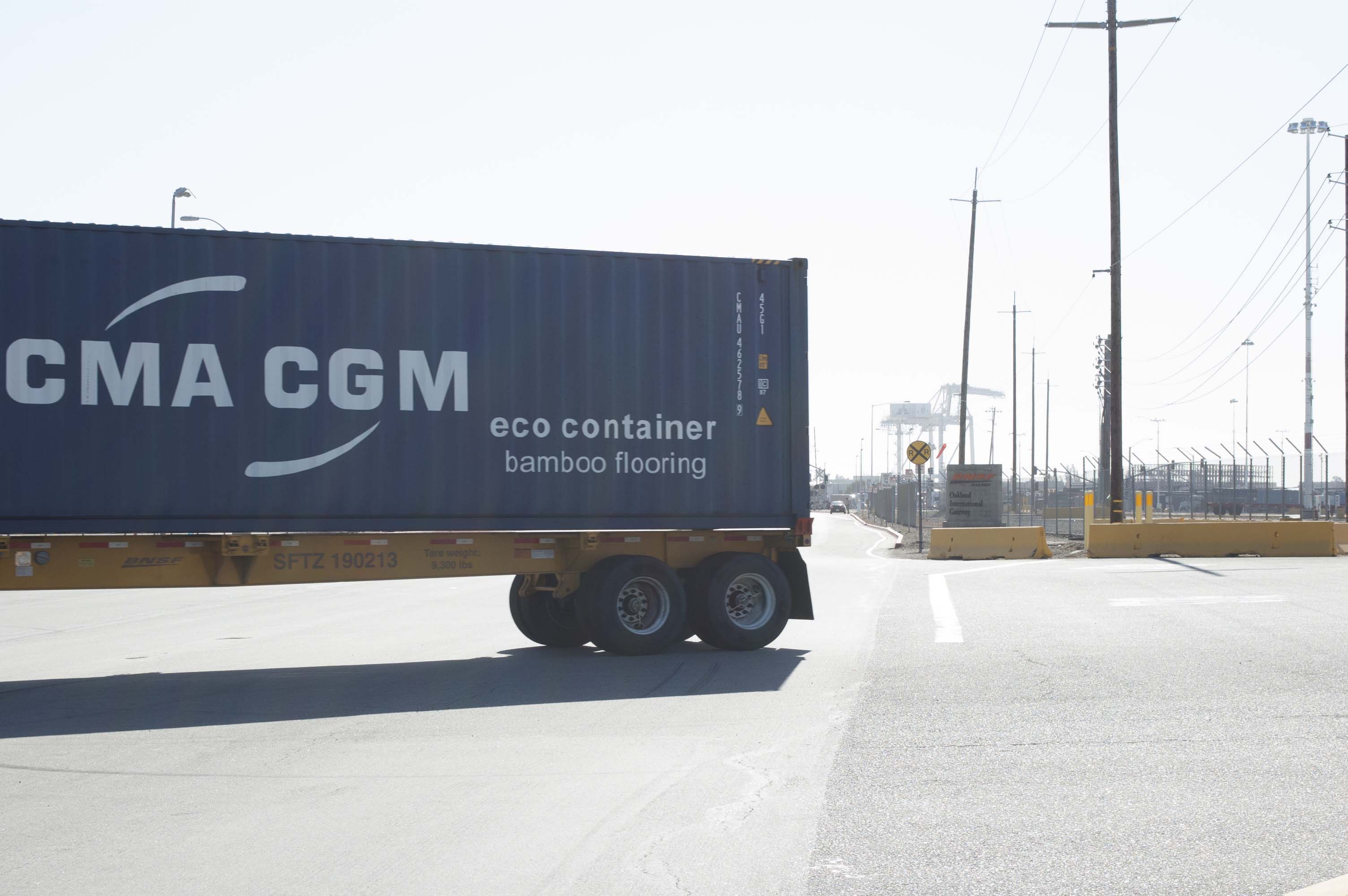If you want to know how a mouse would feel if it got caught beneath a stampede of elephants, ride your bike around the Port of Oakland at 11 o’clock on a Thursday. All sense of scale is lost against a limitless stream of 18-wheelers rumbling to pick up their cargo container. They join the half-mile line of idling trucks, with acrid fumes drifting from their smokestacks, comingling with the lung-stretching heaviness of blacktop in the sun.
