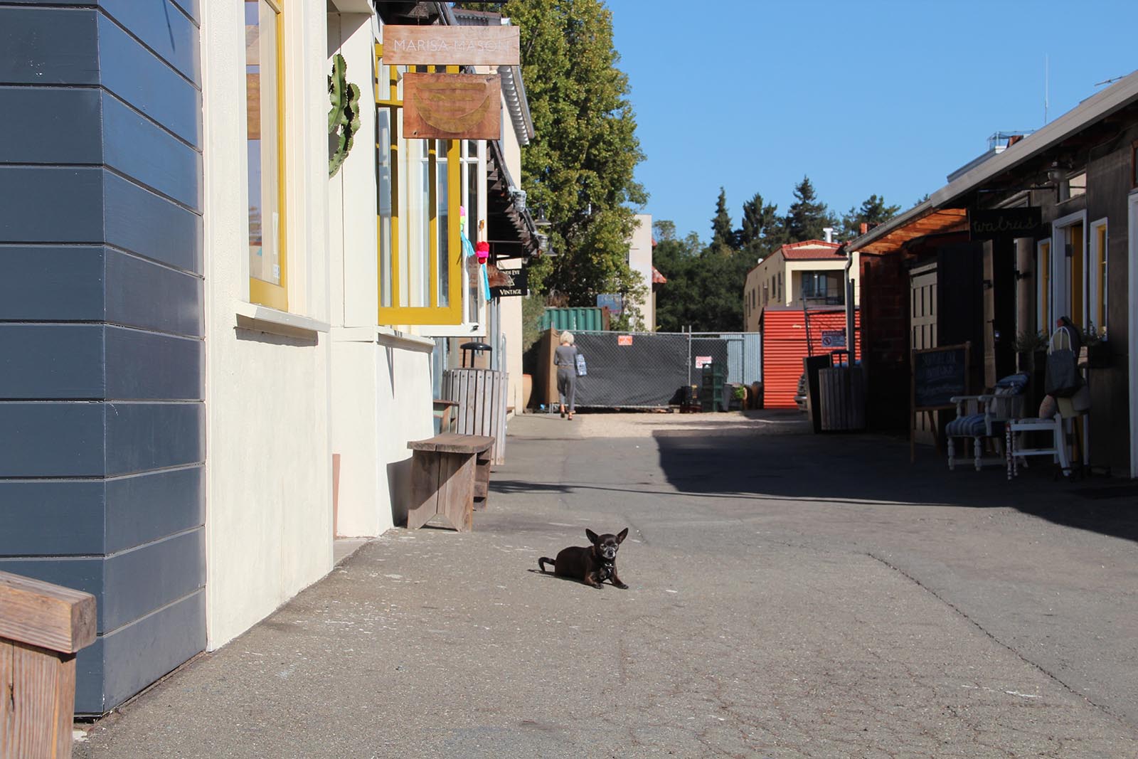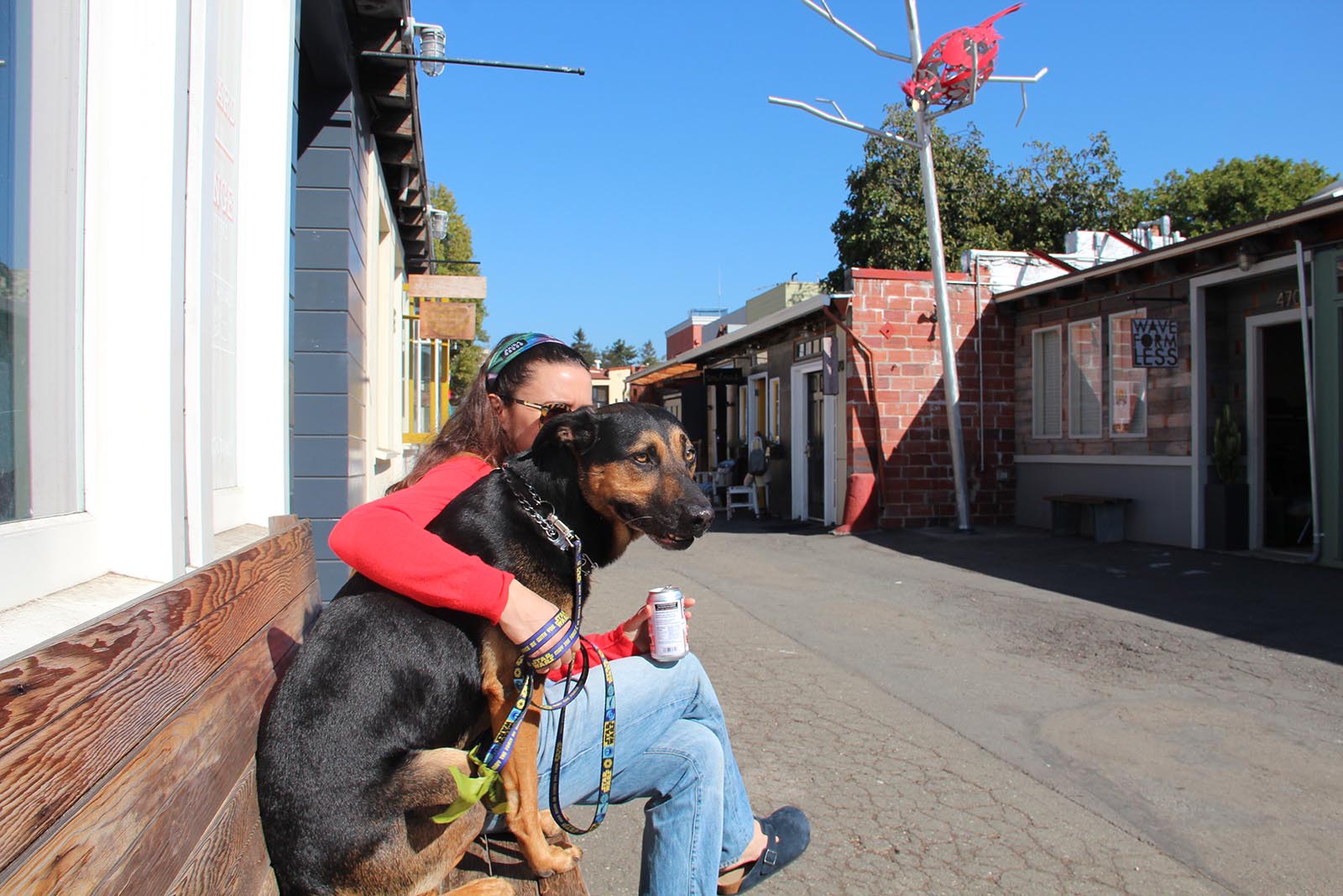 - A dog enjoys the sunny morning in Temescal Alley.