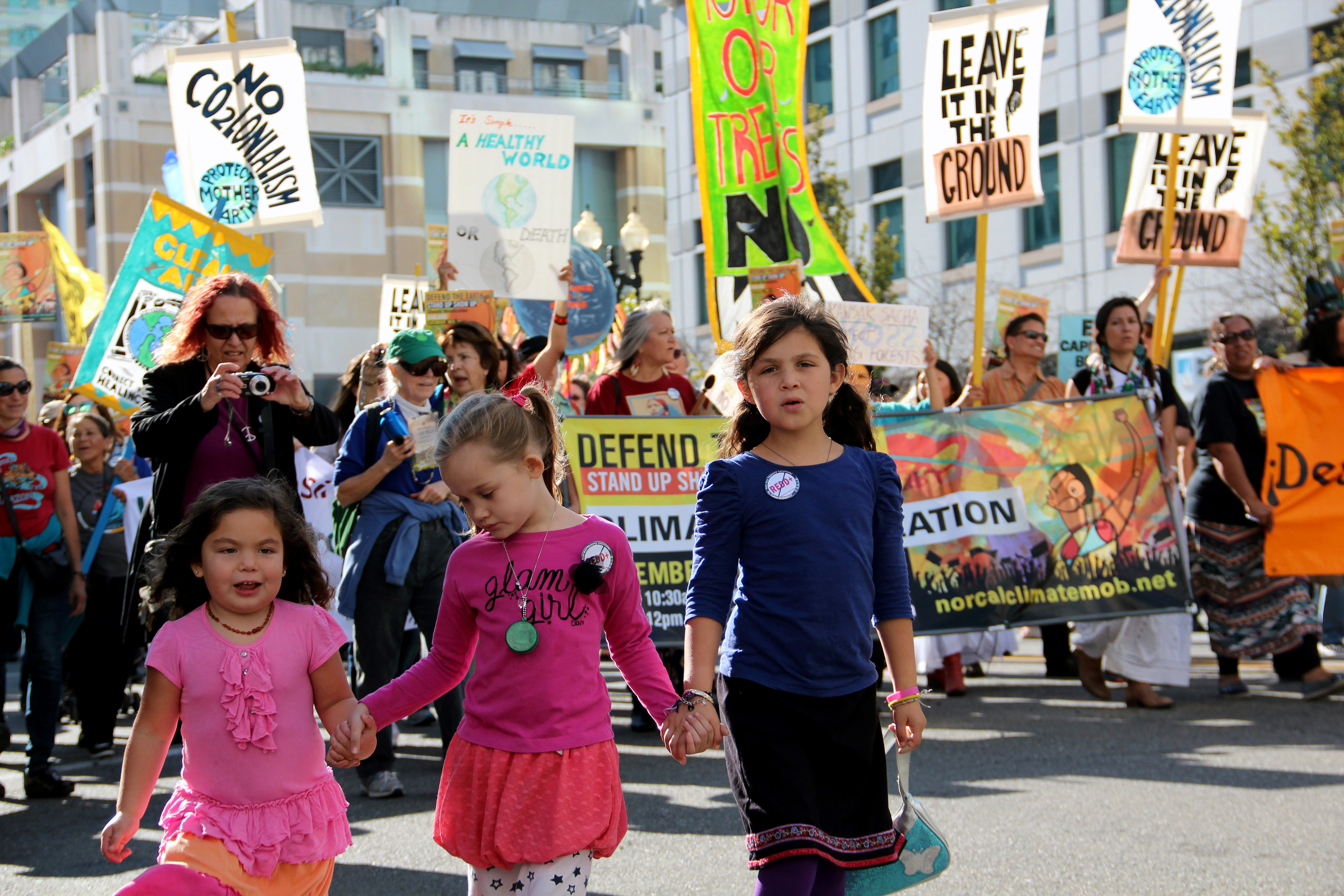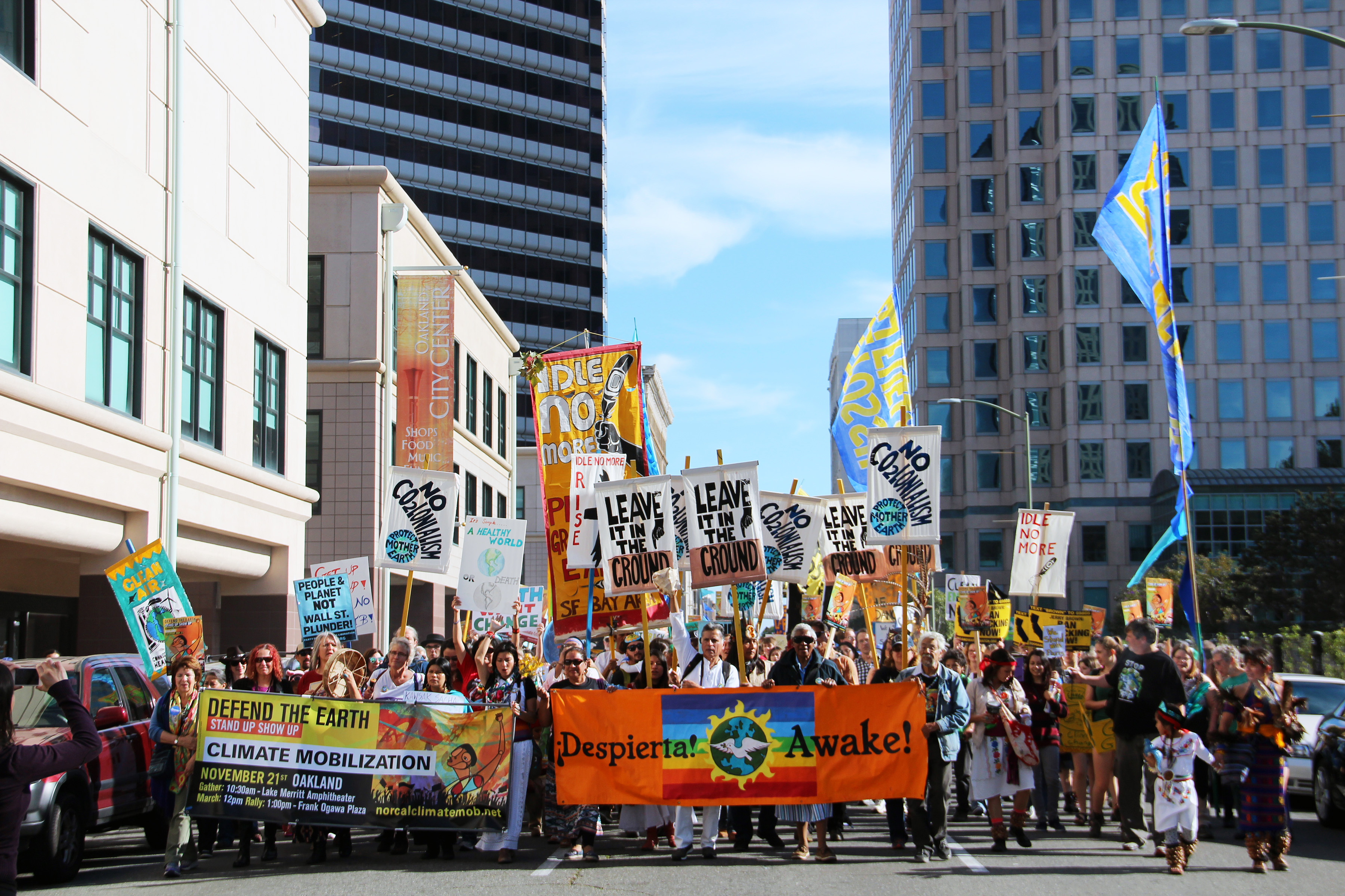 - Thousands of people marched this Saturday in Oakland to demand political action on climate change and a global reduction in the use of fossil fuels in advance of the global climate conference in Paris. Photo by Angelica Casas.