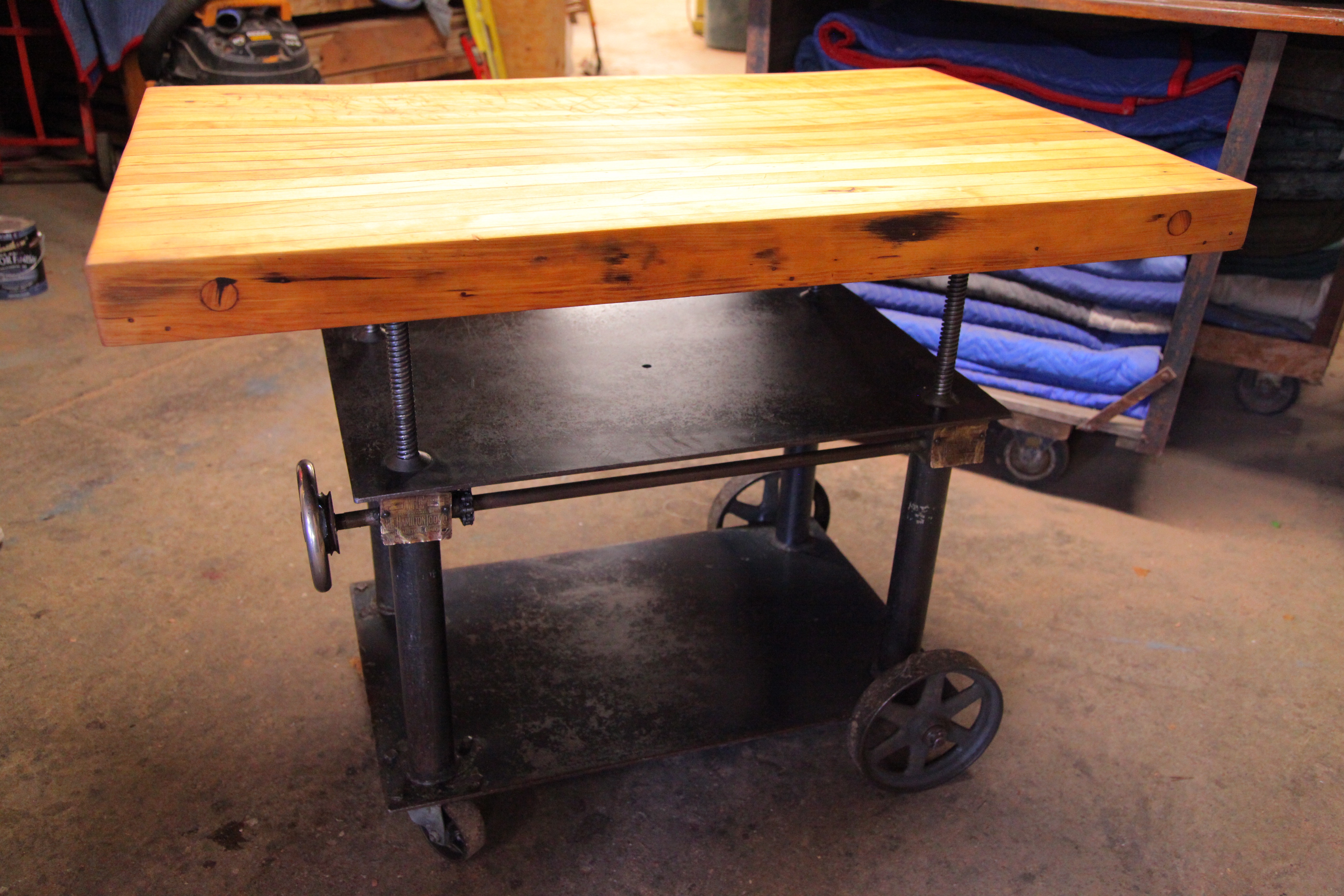 When industrial warehouses and machine shops go out of business, his friend Curtis, another Oakland native, goes to the auctions with a forklift. “Everything’s gotta go,” so Curtis brings his picks to Appleton to use parts for tables, butcher blocks, lamps and fireplaces. Another friend brings him choice finds from estate sales.