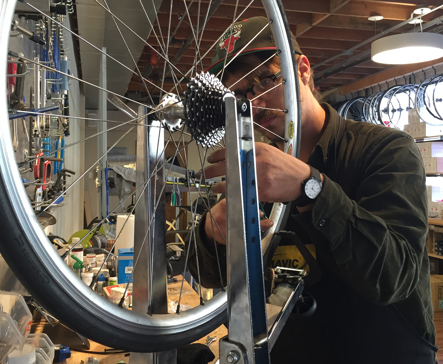 Denesha went to college in Santa Cruz, before moving to Chicago to work in a bike shop co-op. He then moved to Berkeley to work in one of the Bike Stations’ stores. He opened up the 19th Street store in Oakland with a co-worker from the Berkeley location.