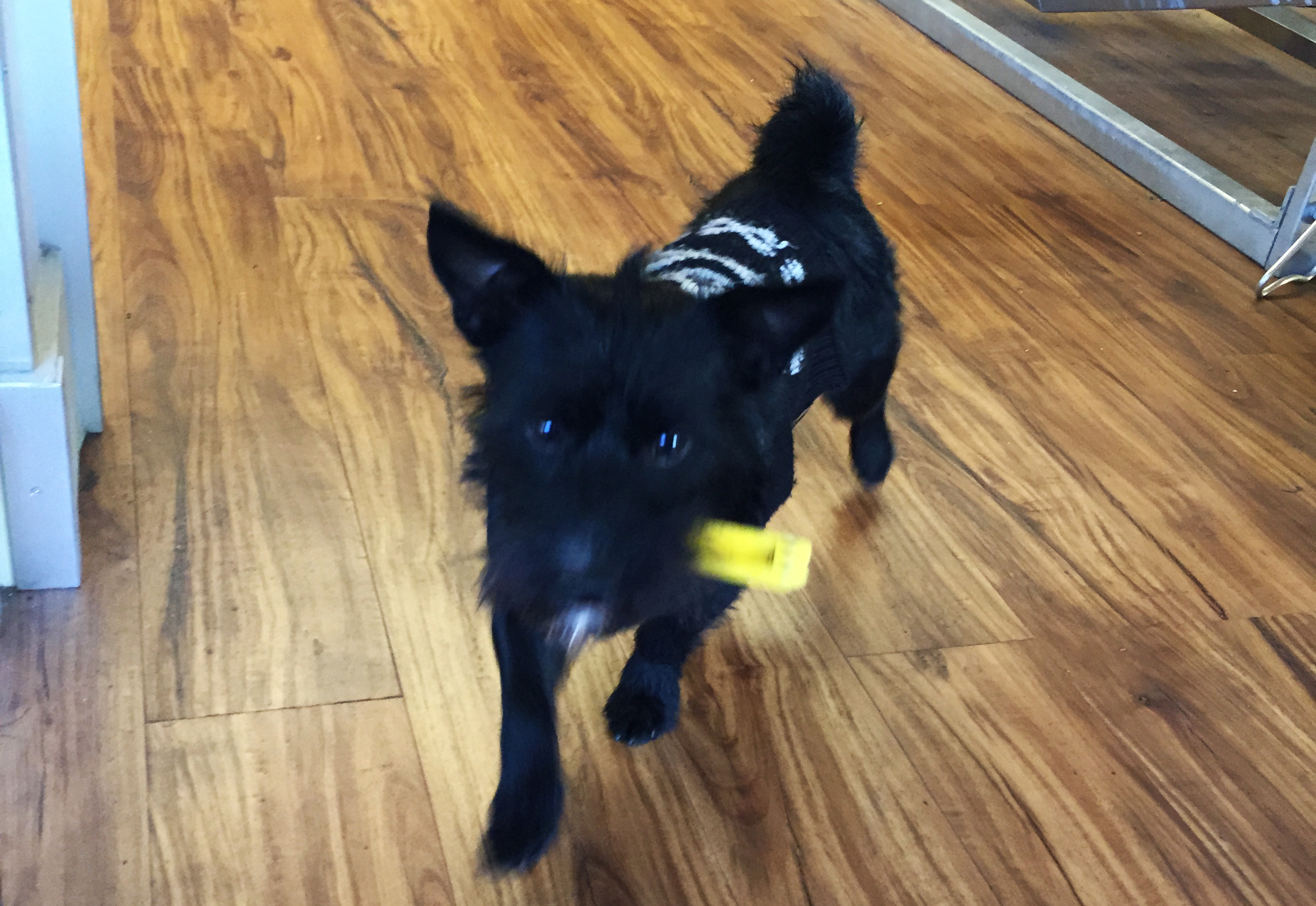 Denesha welcomes all his customers with a smile, while his dog, Pickles, a three-year-old Scottish Terrier, wanders around the store, dressed up in a black shirt with a white skull on the back side.