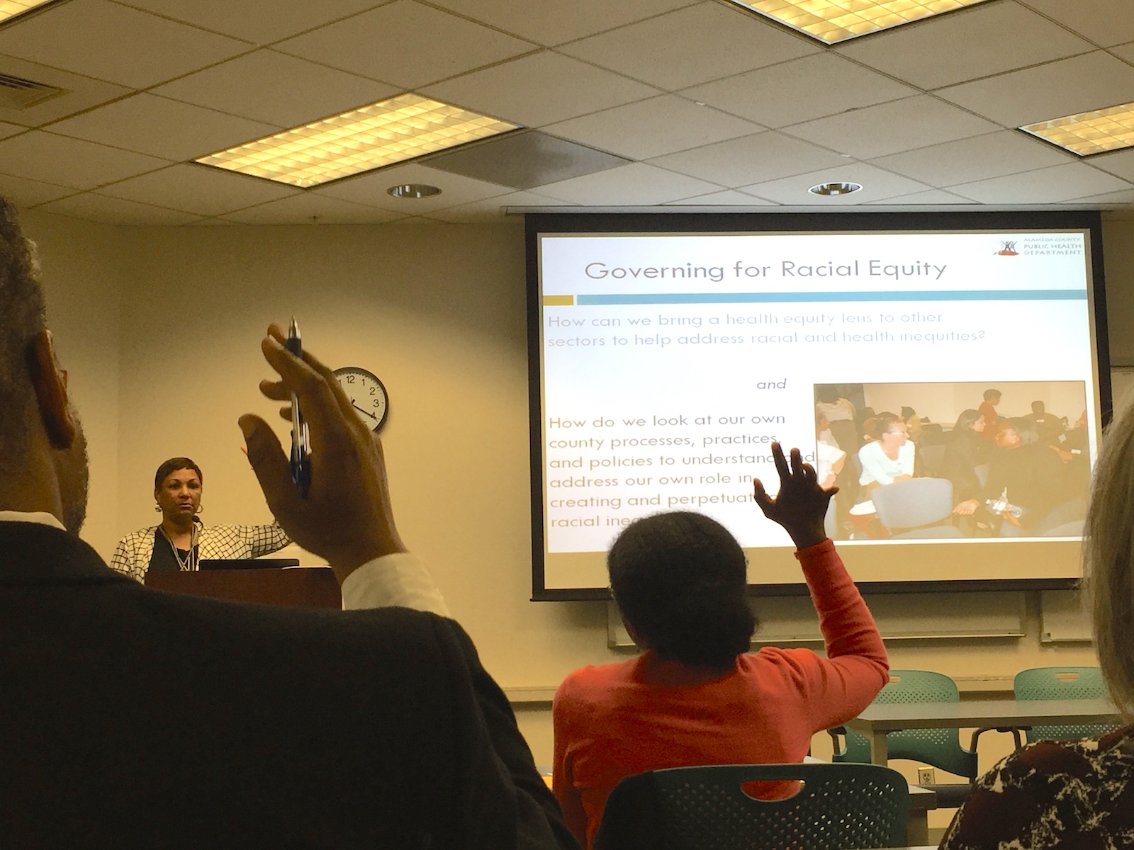 At their first meeting of the year at the county’s public health department headquarters in downtown Oakland, the Bay Area chapter hosted Iton and Watkins-Tartt to help its members better understand the socio-economic roots of national health disparities. Iton provided information on national trends and Watkins-Tartt helped the attendees digest the information at the county level. She also attempted to answer the question that many had: As conscious members of the community, what can we do?