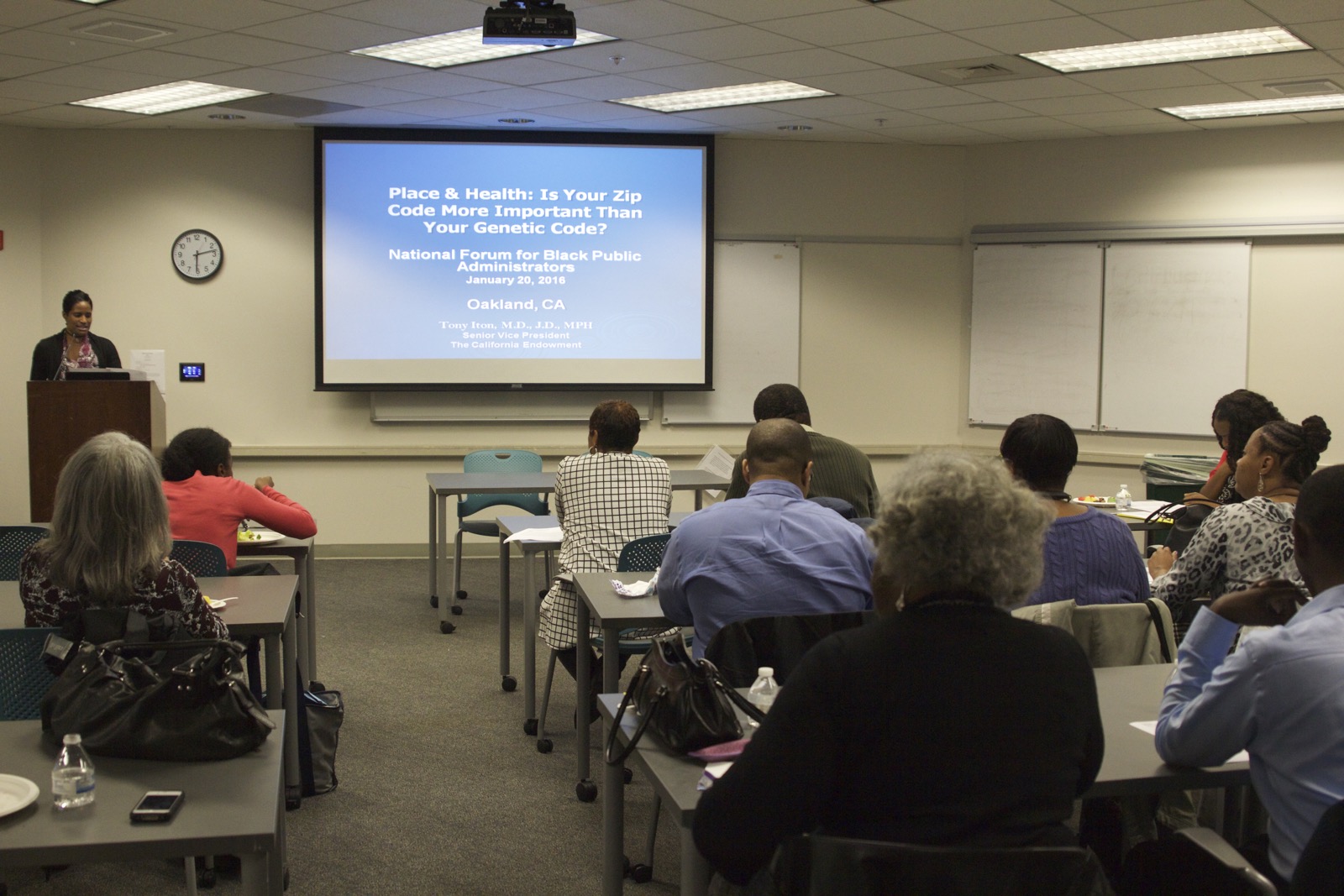 These are the questions that Tony Iton, senior vice president for Healthy Communities at the California Endowment, and Kimi Watkins-Tartt, deputy director of Alameda County Public Health Department (ACPHD) posed to members of the National Fellowship of Black Public Administrators (NFBPA) on Wednesday night. The group’s mission is to strengthen the position of African Americans in public administration and government by exploring national and regional issues concerning the African American community.