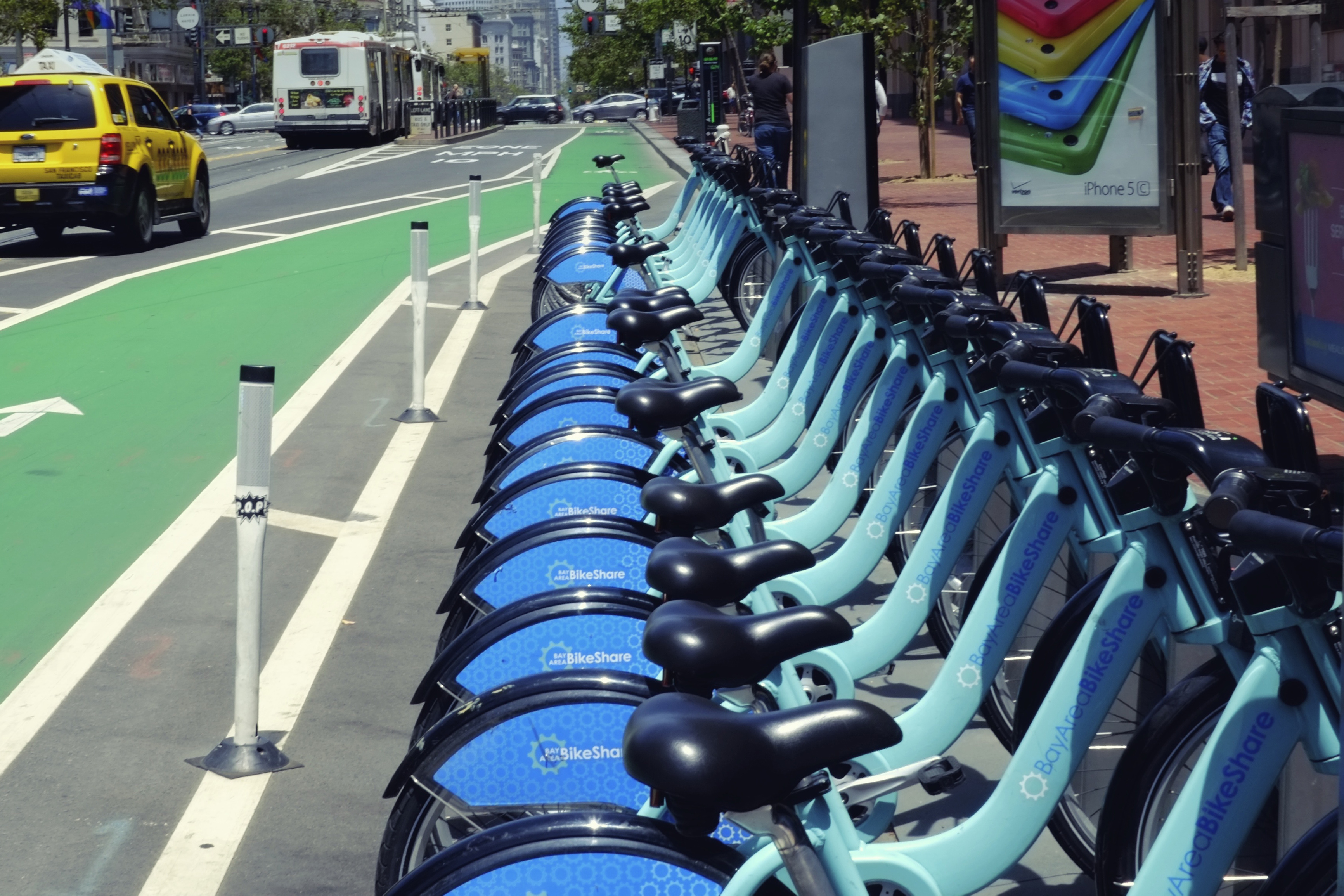 San Francisco launched bike-sharing in 2013, when 350 blue-green bikes were placed in SoMa, the Financial District and along the Embarcadero. Since then, locals and tourists alike have checked out the bikes, taken them on short rides, and returned them to bike stations, paying by the day, month or year.