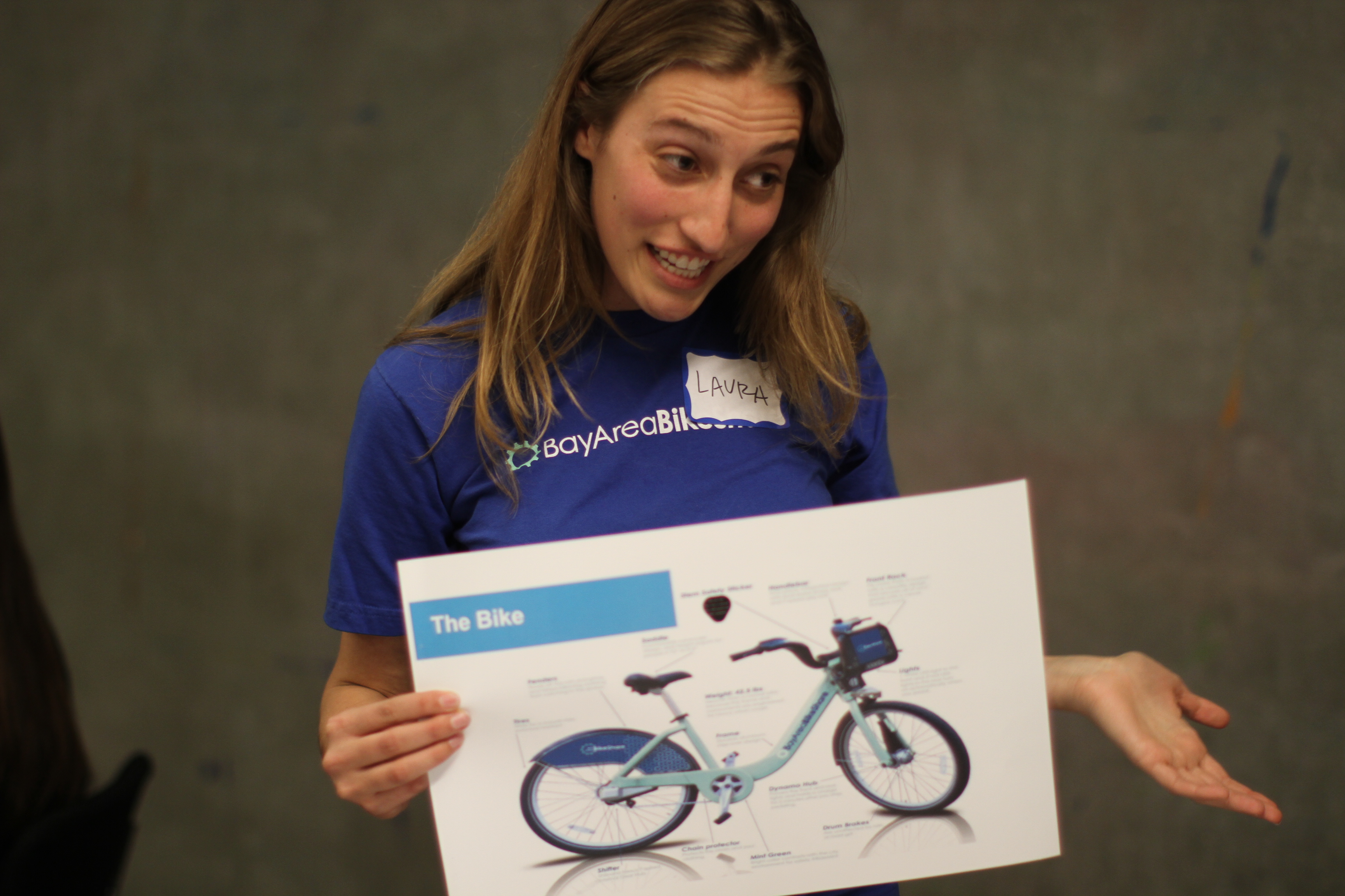 - At a public meeting Monday, staffers from Motivate, the company that runs Bay Area Bike Share, presented information about the program to Berkeley residents. (Photo by Sam-Omar Hall)