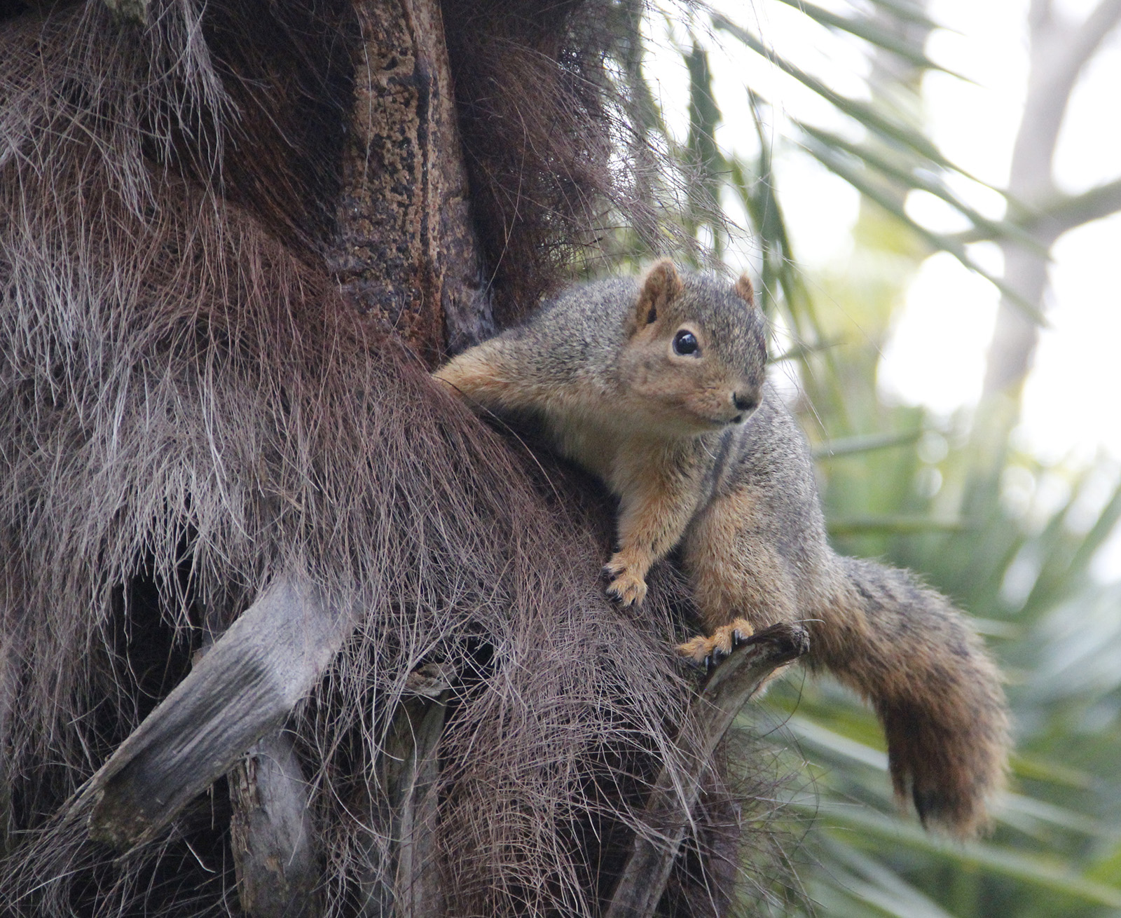 - A squirrel hangs upside down on a palm tree and munches on a walnut. Most of the squirrels seen at Lake Merritt are eastern fox squirrels, though eastern grey squirrels are also found in the East Bay.