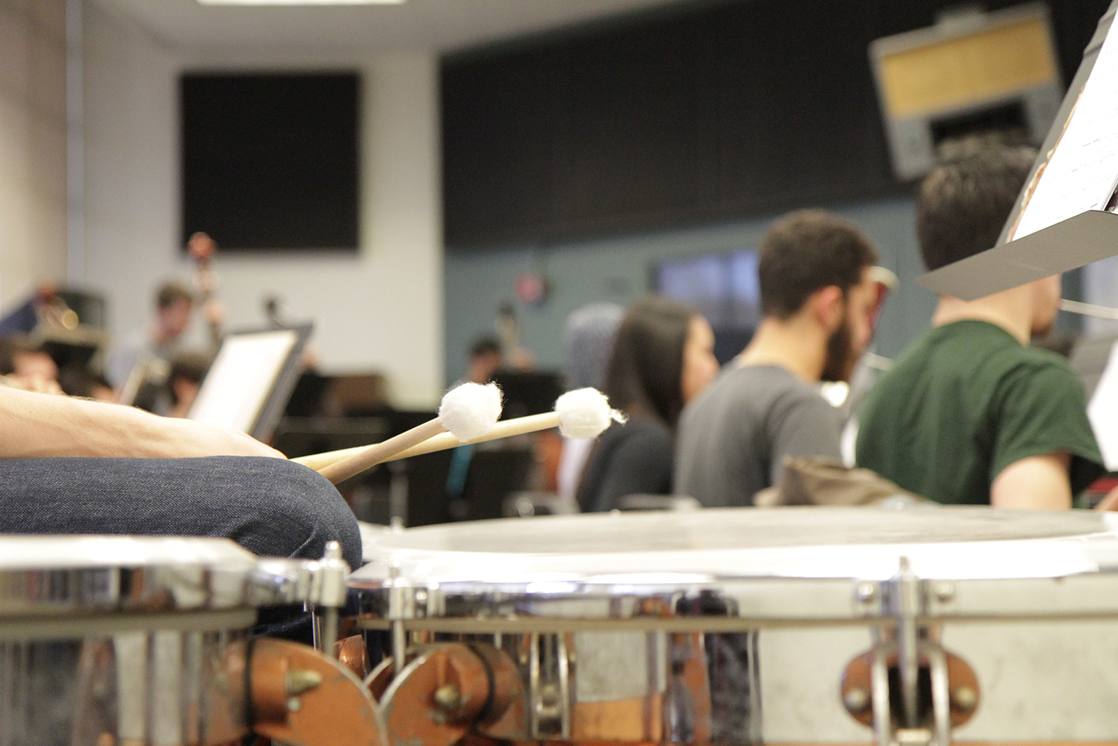 - An instrument rests on a seat during the woodwind rehearsal.