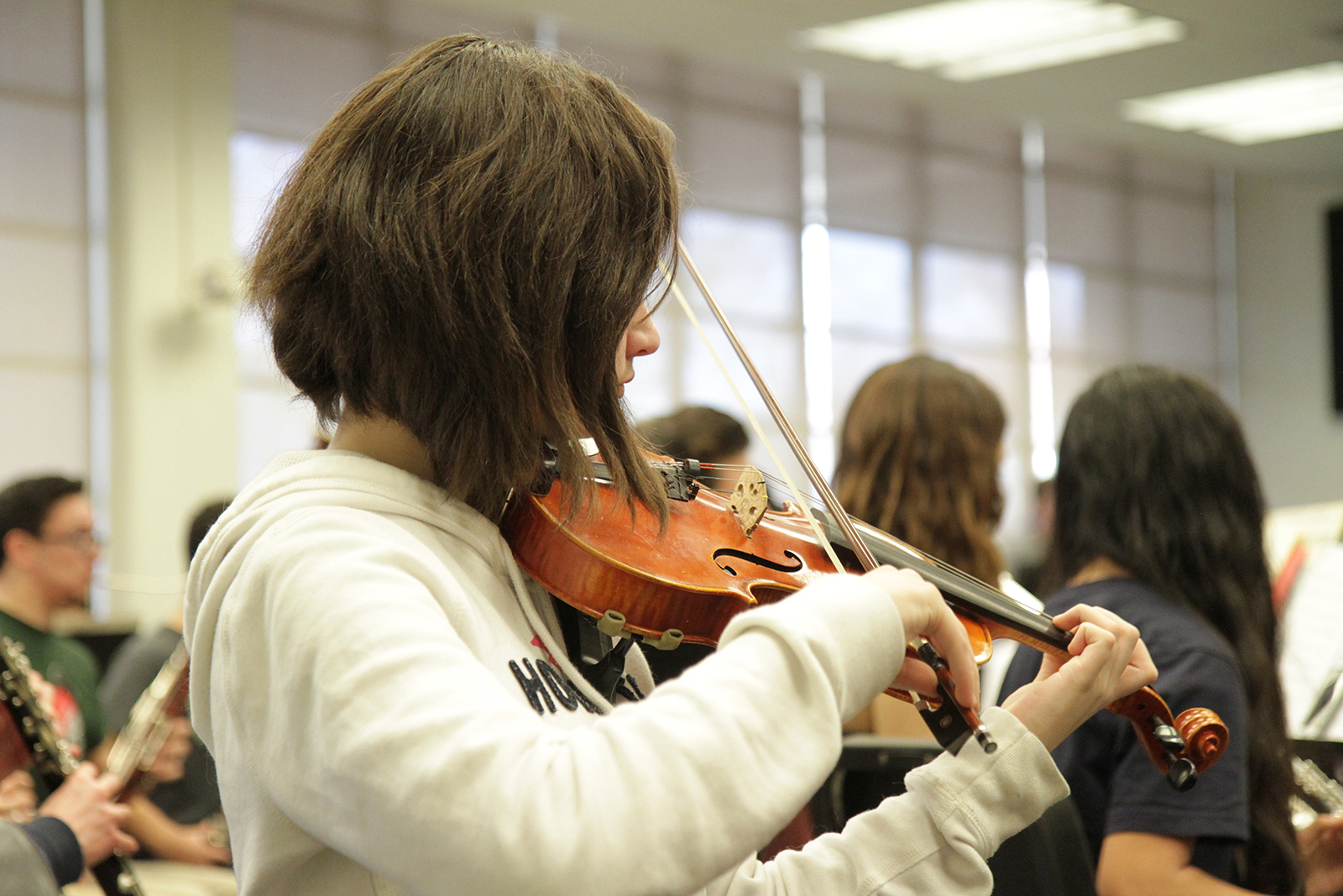 - Mereth Niemoeller, a violinist for the Youth Orchestra, rehearses a piece.