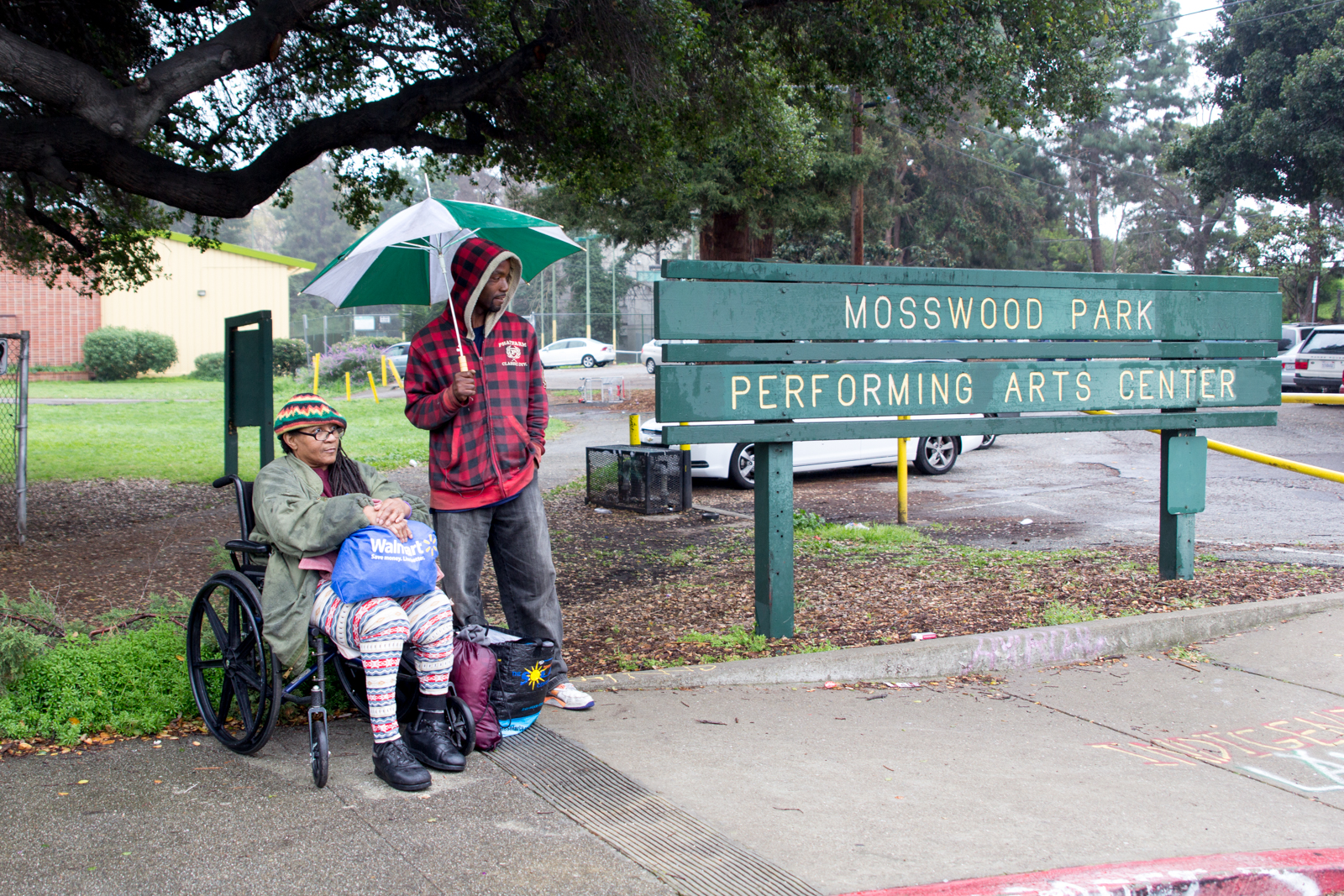 - Two attendees outside Mosswood Community Center, where the event was held. Photo by Isara Krieger