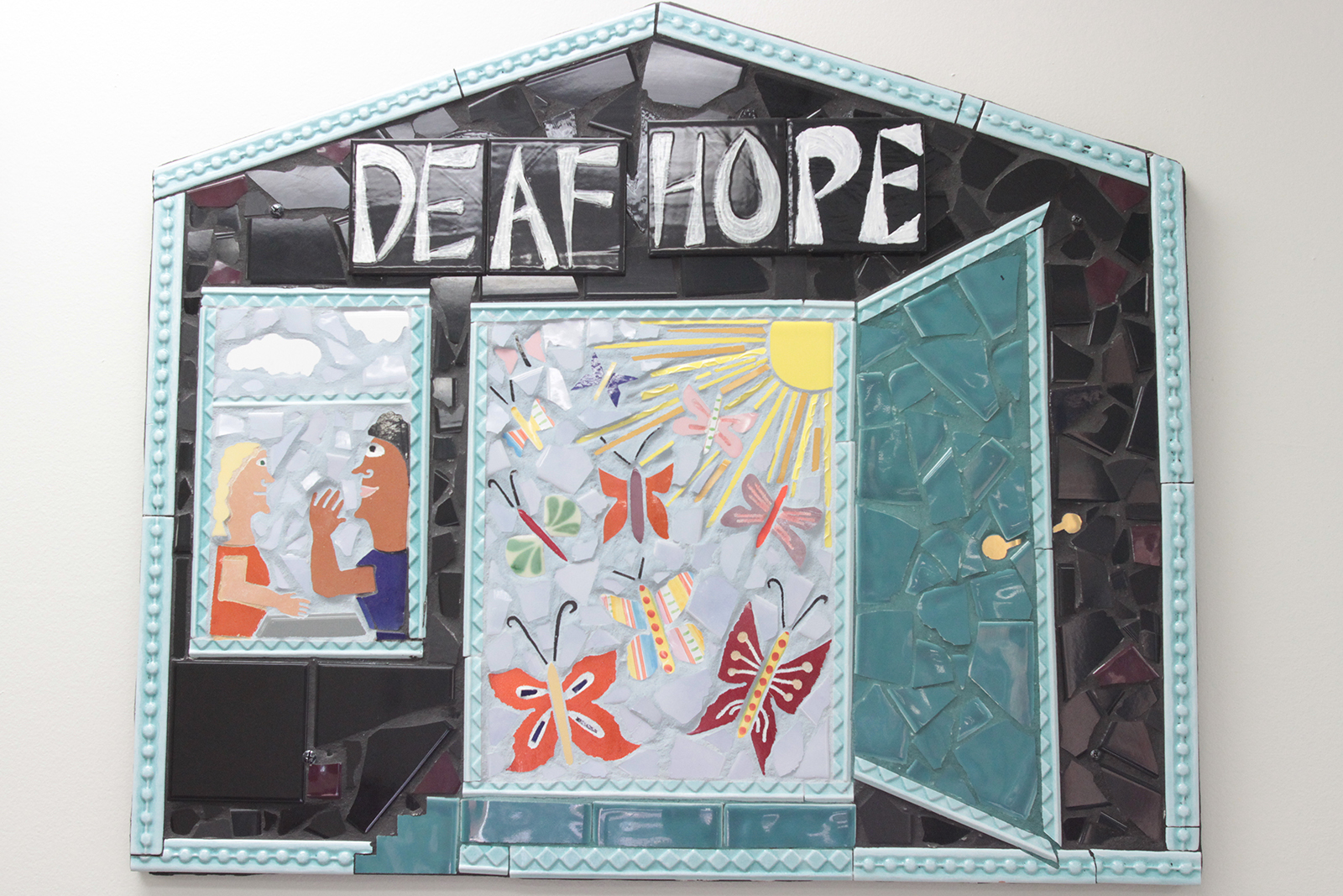 - A mosaic hanging at the Alameda County Family Justice Center.