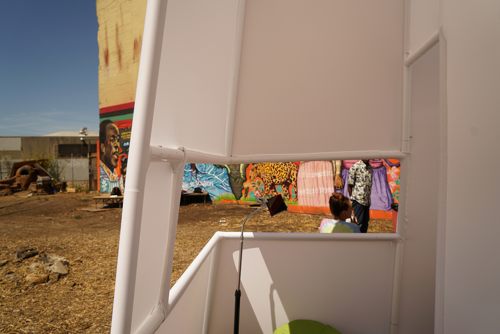 - Safe Shape’s bold structure invites visitors at the Afrikatown Community Garden in downtown Oakland.