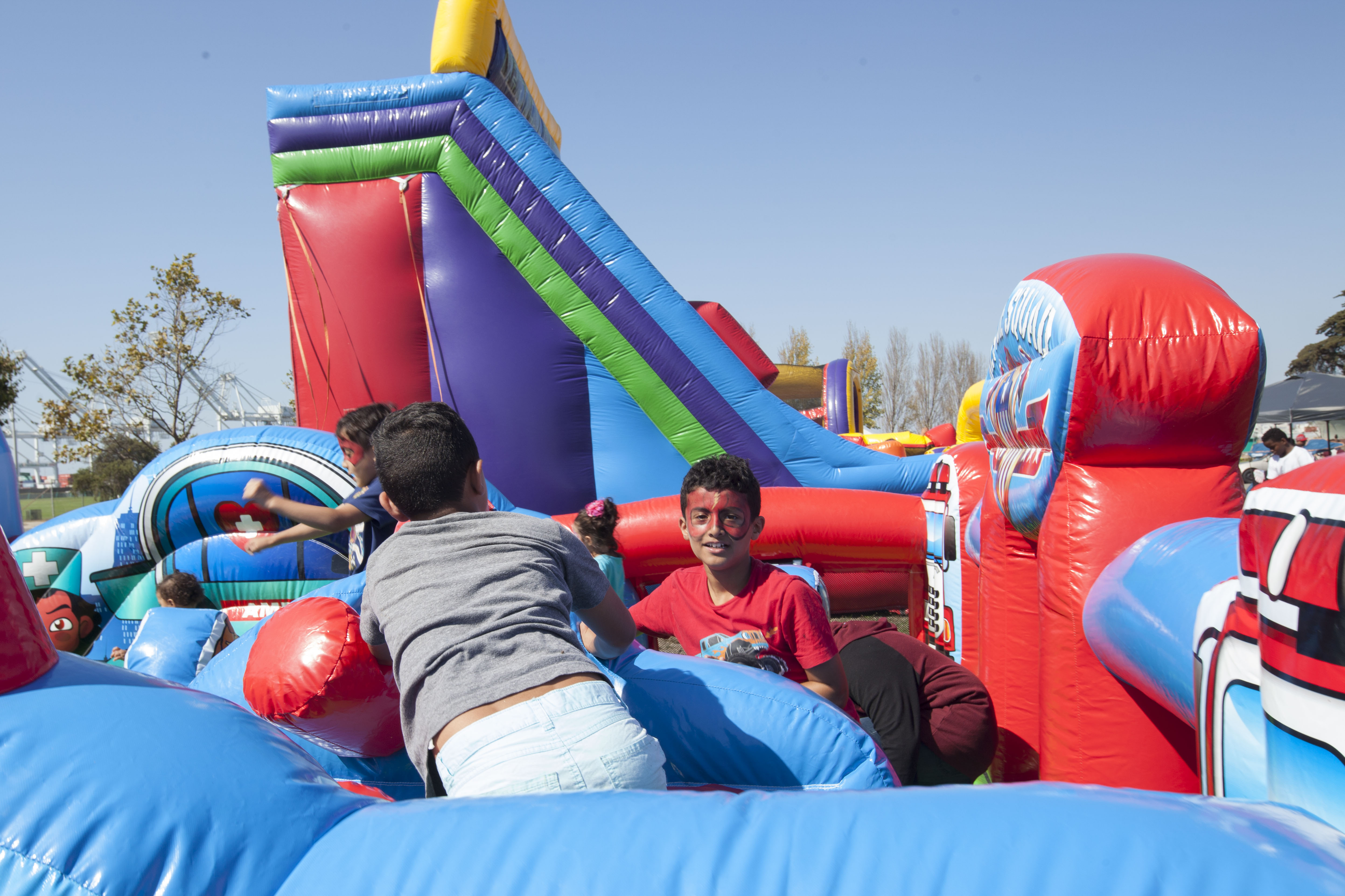 - Adnan Moshin, 11 of Alameda jumps around with friends in one of the several inflatable moon bounces.