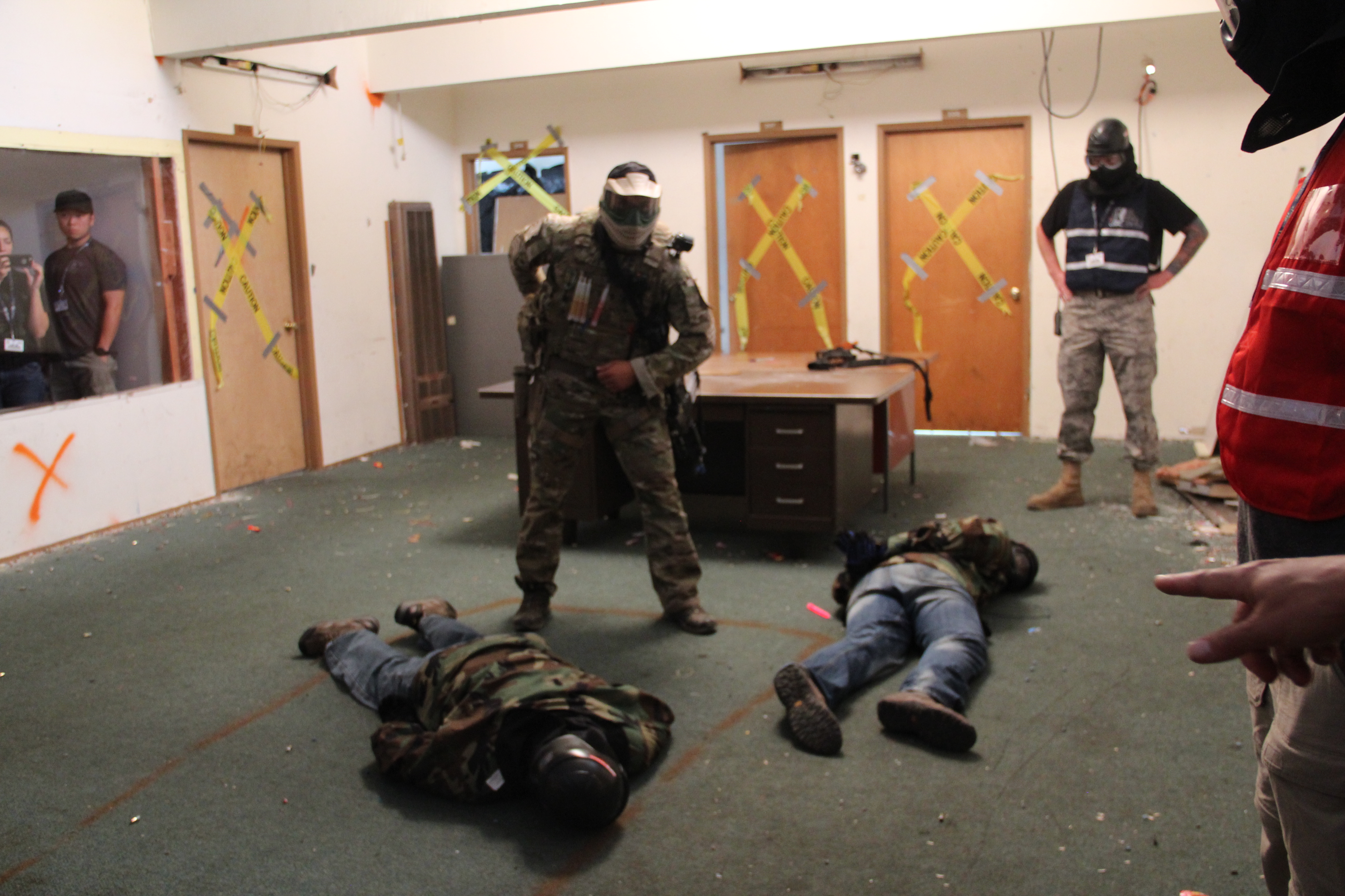 In one exercise on Saturday afternoon, OPD officers were assigned a mock mission to subdue terrorists, rescue their hostages and medically treat a downed officer in an abandoned two-story building. Four officers ran up a flight of stairs, then stormed through an unmarked door, which opened to a main room. As observers watched from behind Plexiglas walls, they performed the action in less than two minutes in a quick barrage of fire. Then the men returned to the debriefing room to review what they did right and what they could improve upon.