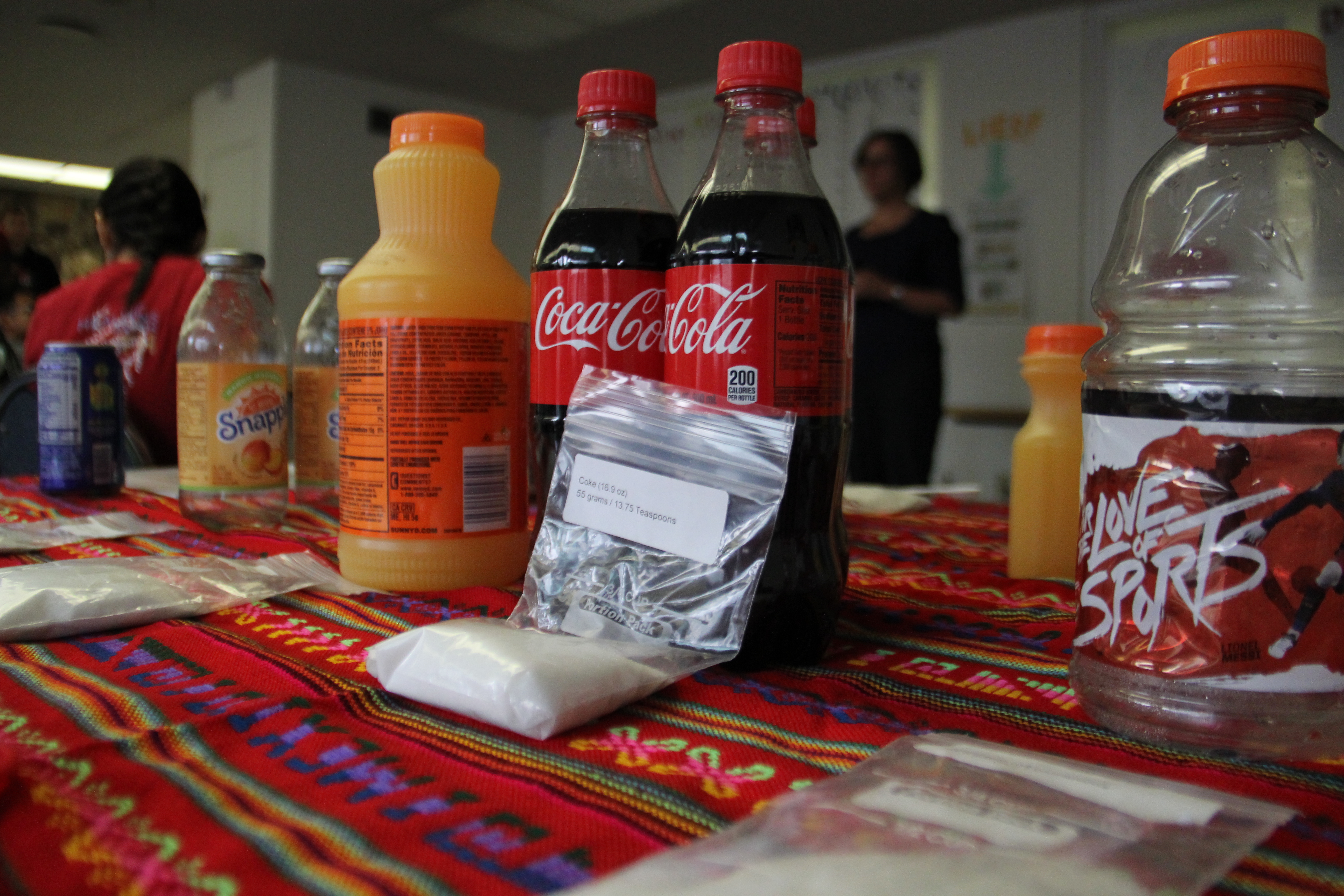 - At the Oakland v. Big Soda campaign headquarters, a demonstration shows how much sugar is in each bottle of Coca-Cola.