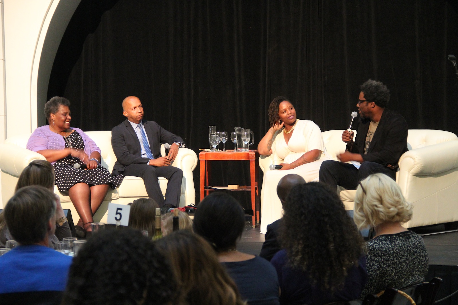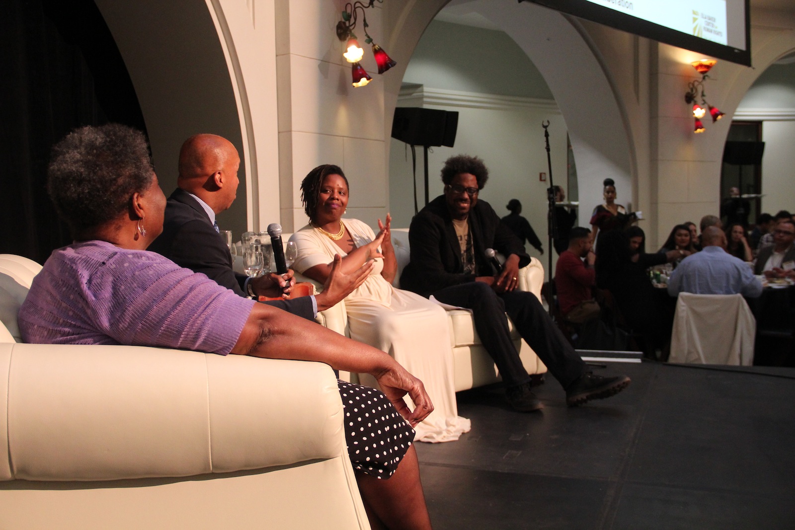 - The event featured a panel with a lively discussion. From left to right: Eva Patterson, Bryan Stevenson, Patrisse Cullors and moderator, W. Kamau Bell.