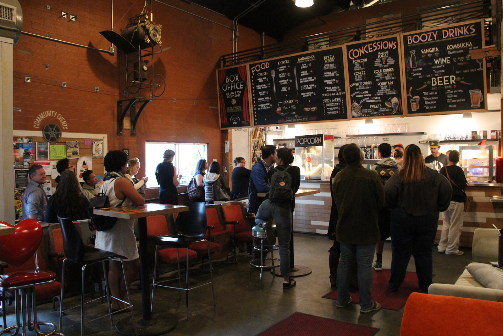 - Moviegoers gather to grab their tickets and snacks before heading into the theater.