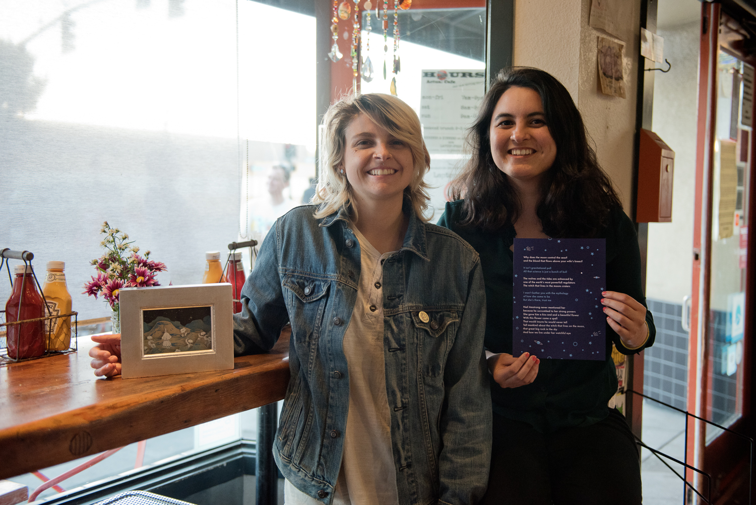 - Alexia Webber (left) with her diorama of an untitled original poem by Sandy Frank (right.) Photo by Rosa Furneaux.