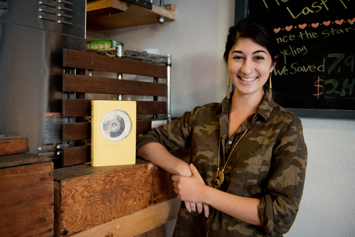 - Allie Cheroutes with her diorama of ‘Cat’s Cradle’ by Kurt Vonnegut. Photo by Rosa Furneaux.