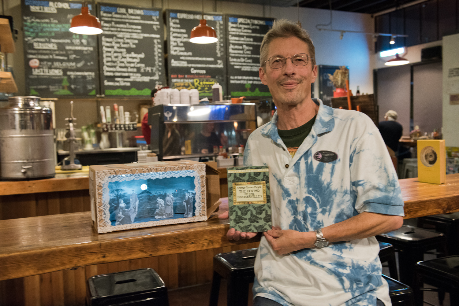 - Martin Sirk, first place winner, with his diorama of ‘The Hound of the Baskervilles’ by Arthur Conan Doyle. Photo by Rosa Furneaux.