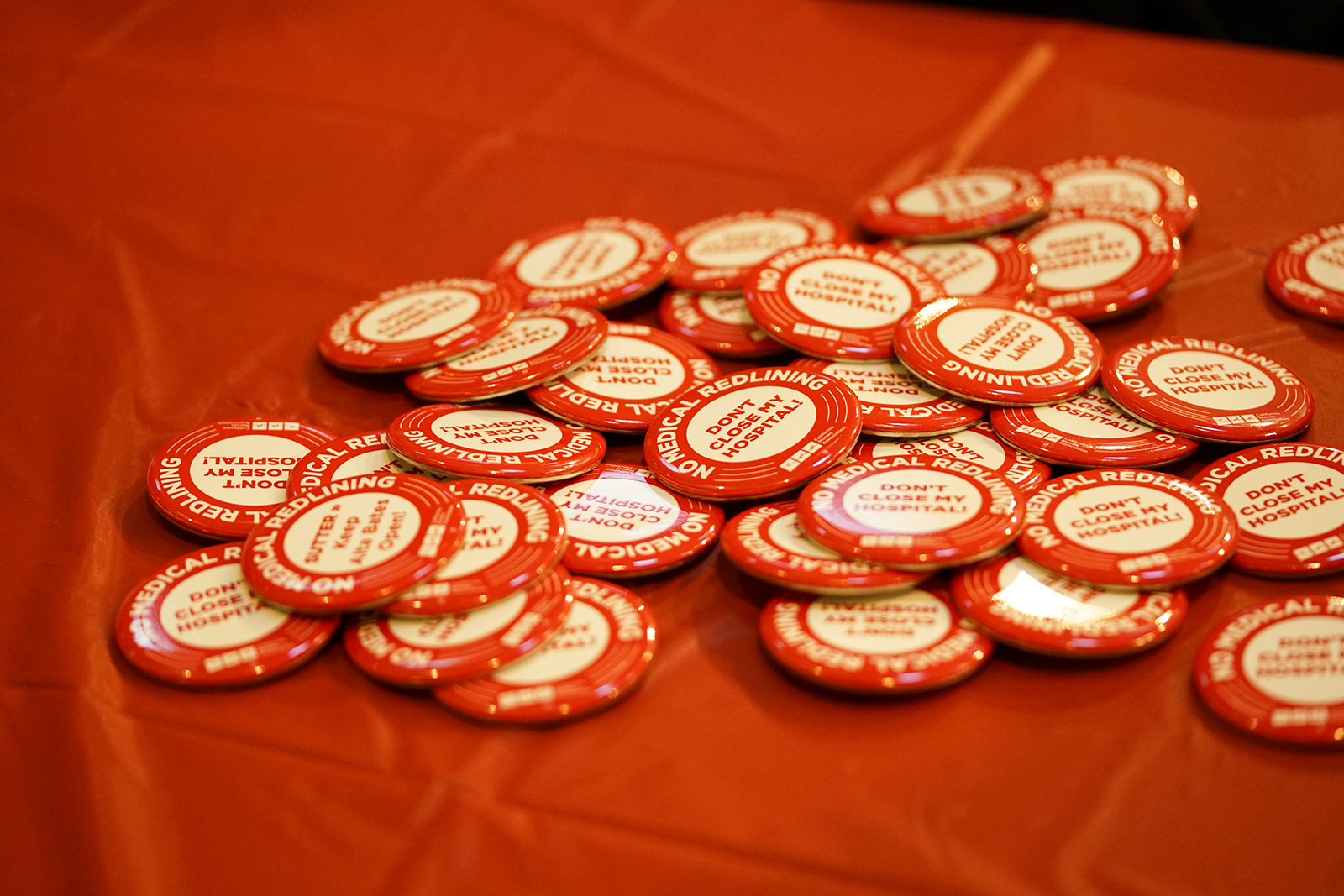 - The California Nurse’s Association supplied buttons reading “Don’t close my hospital!”