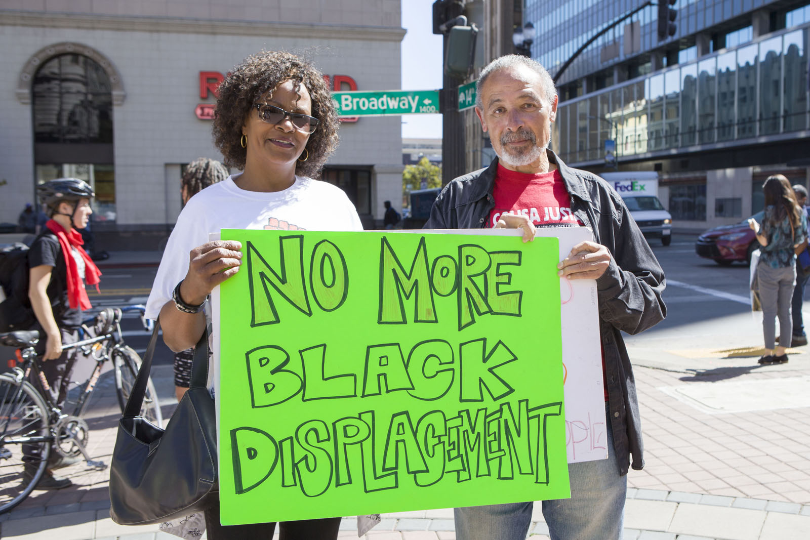 - Alma Blackwell, Causa Justa housing rights activist and Phil Hutching, an Oakland resident.