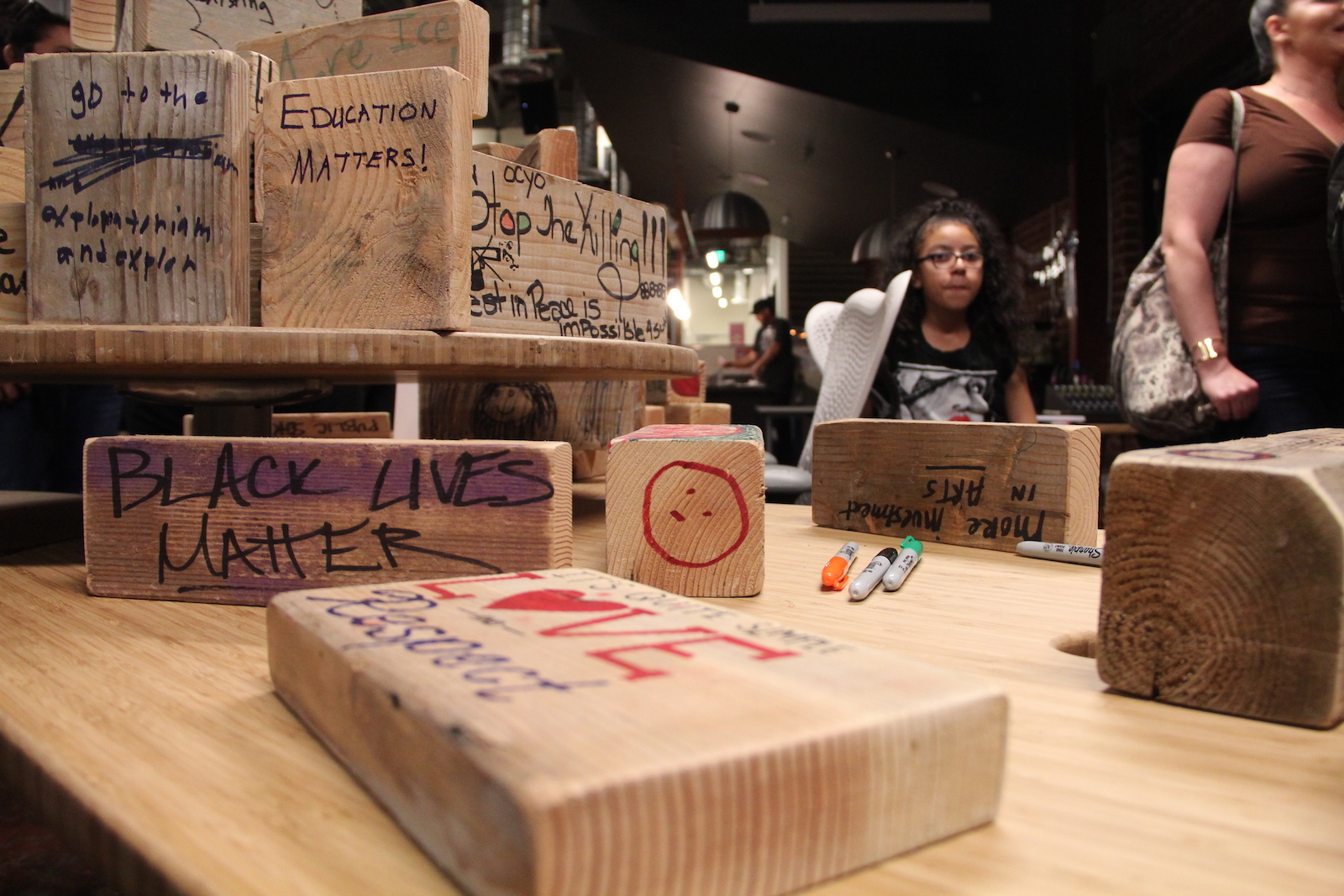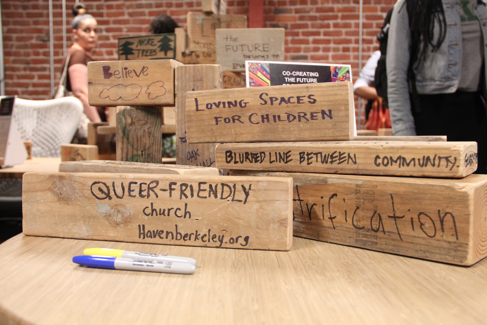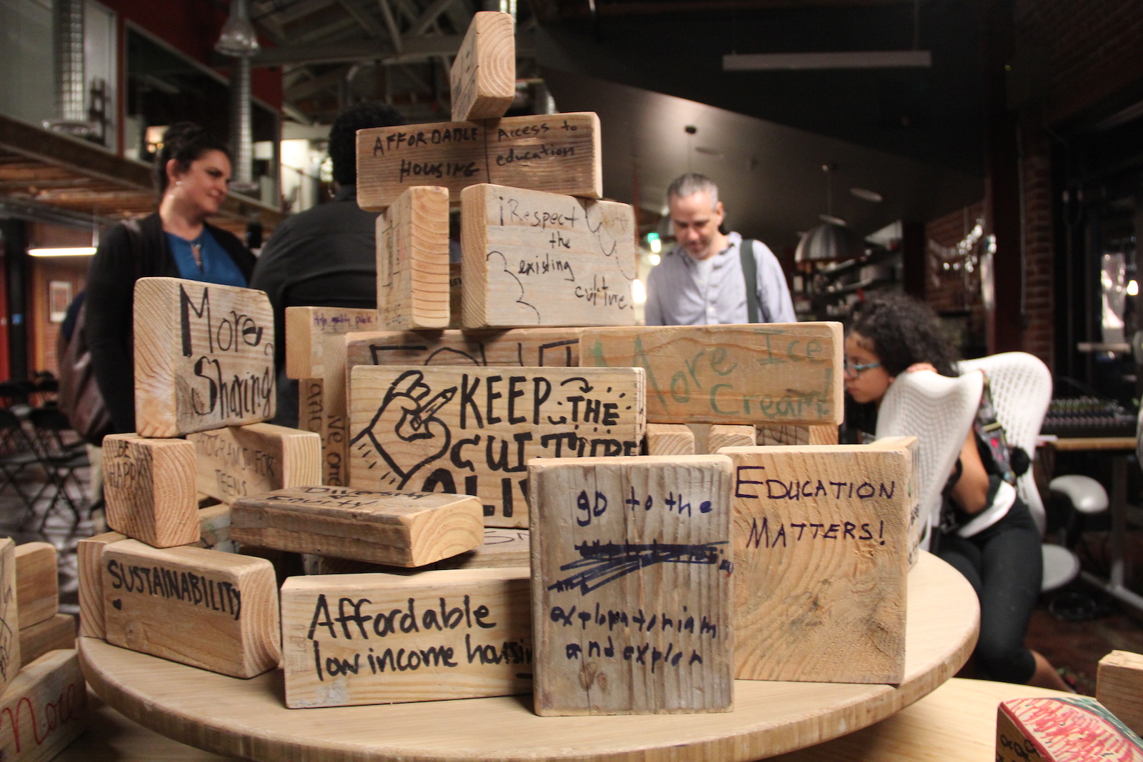 - Residents had the opportunity to write what they hope to see more of in Oakland on blocks provided by IHO’s community partners,