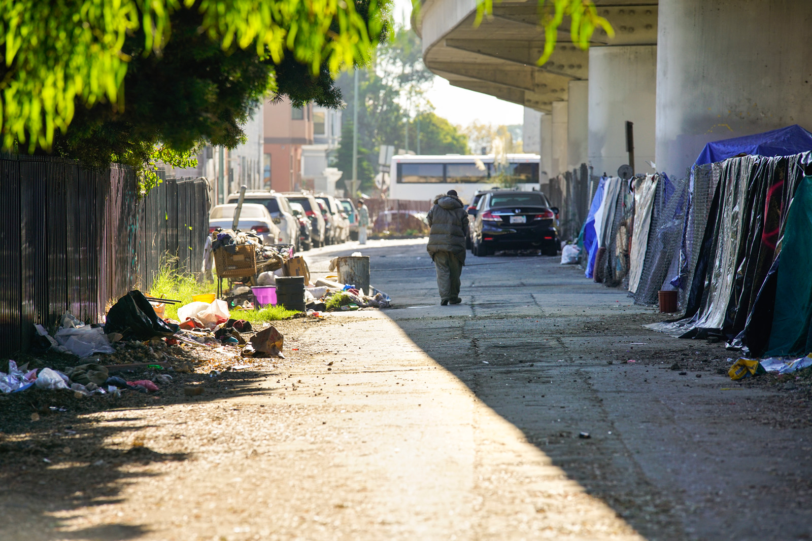 - A homeless man walks towards a tent in a encampment behind the Chinese Garden Park in Oakland on Saturday, October 1, 2016. (Yesica Prado/Oakland North)