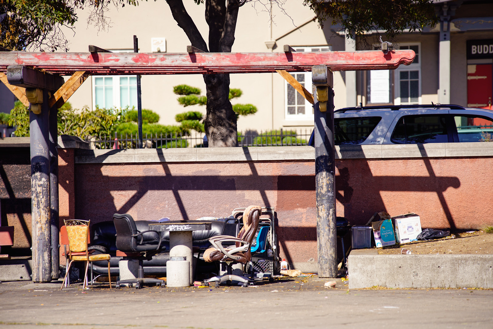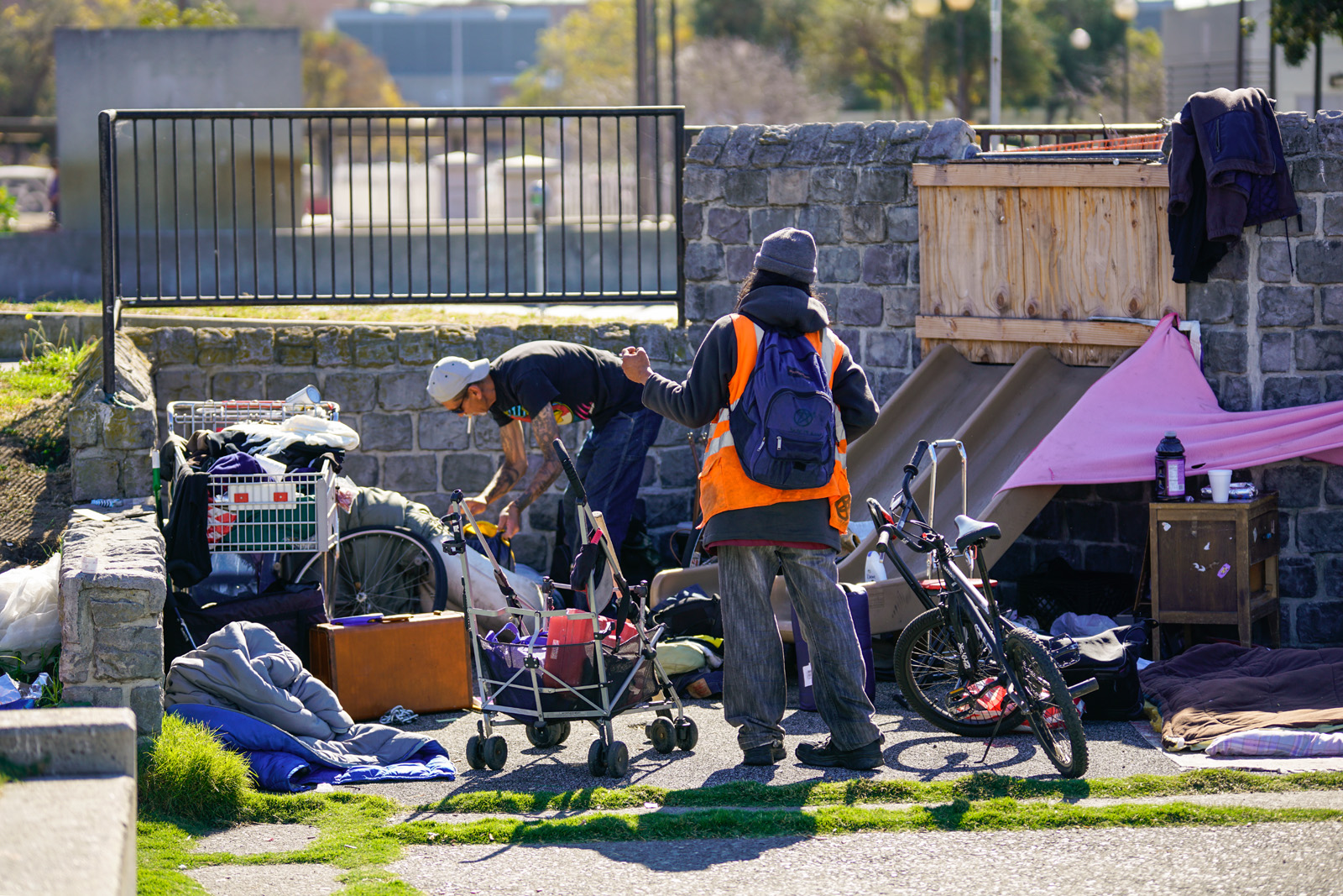 - A mattress lays along the fence of the Chinese Garden Park in Oakland on Saturday, October 1, 2016. The Chinese Garden Park serves as a homeless encampment and is sorrounded by six visible tents as well as stray cats. (Yesica Prado/Oakland North)