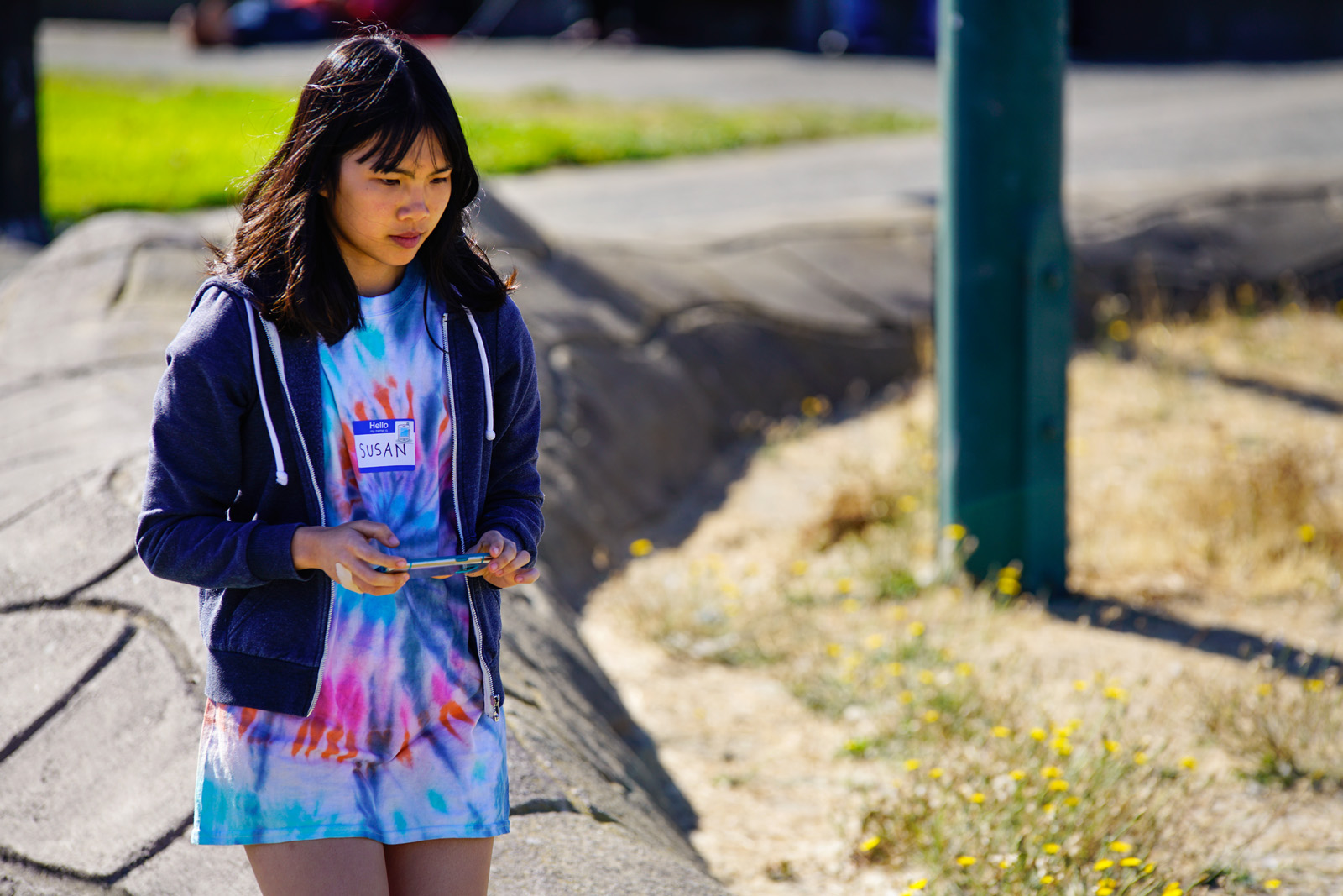- Susan Nguyen takes a picture of the damaged grass at Madison Square Park in Oakland on Saturday, October 1, 2016. Nguyen attends Alameda High School and consistently volunteers in service learning projects, hoping to break the community hours record of the standard 20 hours requirement at her school. Nguyen uses the photos to upload on an app called “SeeClickFix,” which is used to report non-emergency issues in Oakland. The app is available for use along other cities in the Bay Area such as San Francisco, Berkeley and Alameda among others. The SeeClickFix creators hope to encourage residents to become active citizens in taking care of and improving their city. (Yesica Prado/Oakland North)