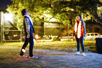 - Volunteers laugh as they enjoy playing with neon light balls at the Autumn Lights Festival in Oakland on Wednesday, October 12, 2016. (Yesica Prado/Oakland North)