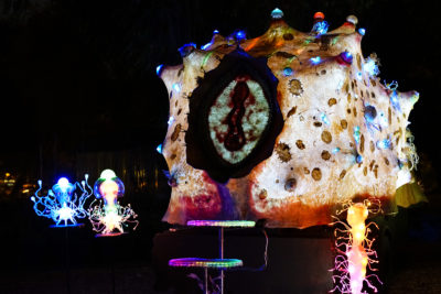 - The “Lighting up Food” art installation created by Alameda County Master Gardeners glows in the dark, looking like an illuminated body cell at the Autumn Lights Festival in Oakland on Wednesday, October 12, 2016. (Yesica Prado/Oakland North)