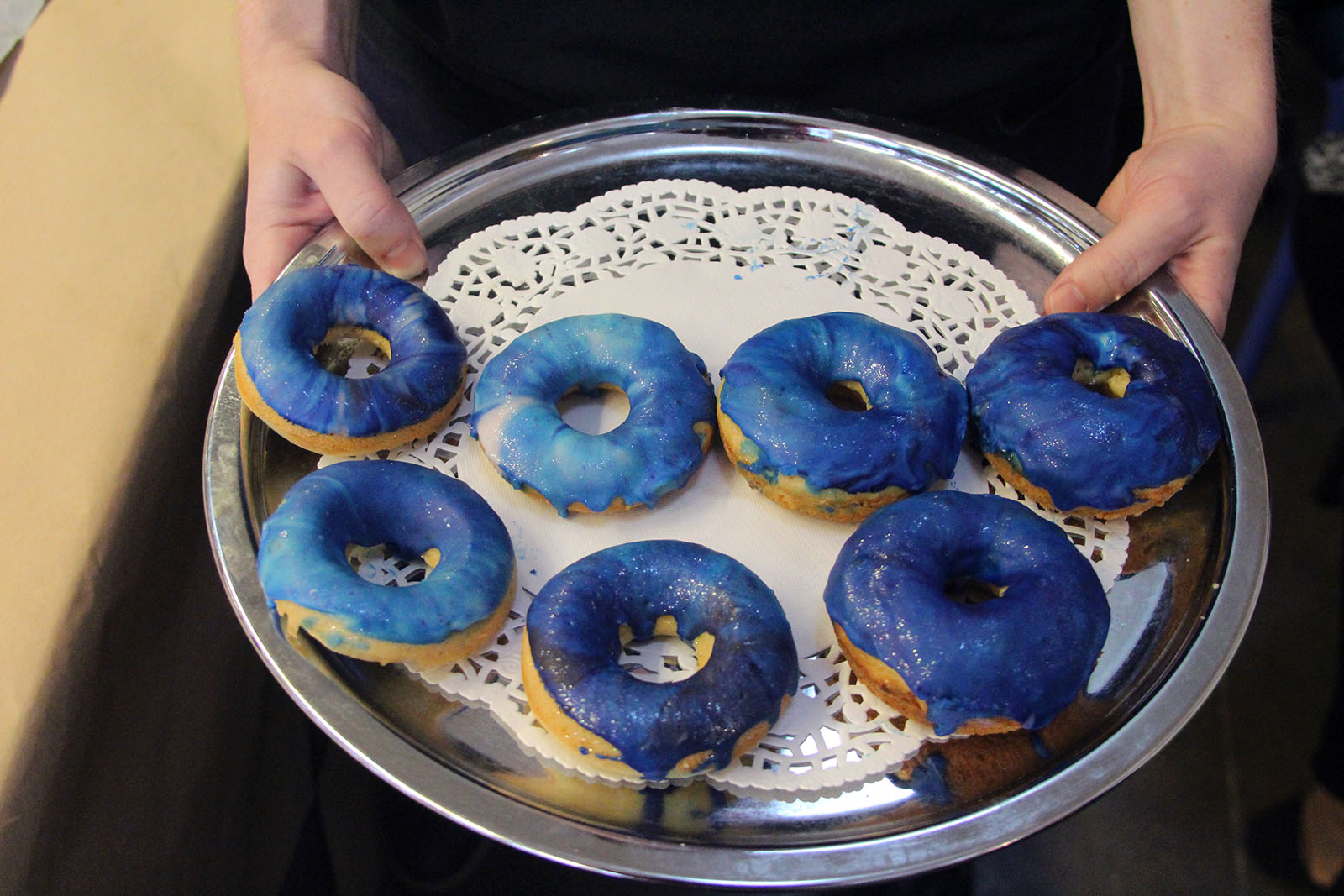 - An attendee baked “galaxy donuts” for the Depressed Cake Shop’s pop-up event on Saturday.