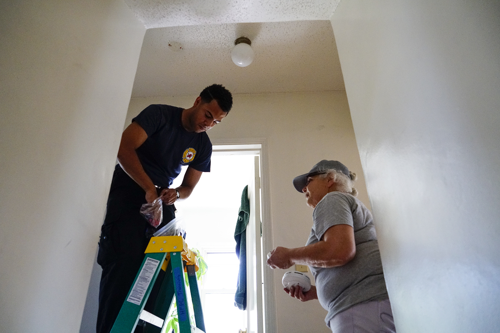- The American Red Cross and the Oakland Fire Department knocked on Fruitvale residents’ homes to install and inspect new smoke alarms as part of the initiation of their Home Fire Preparedness Campaign on Saturday, October 8, 2016. (Yesica Prado/Oakland North)