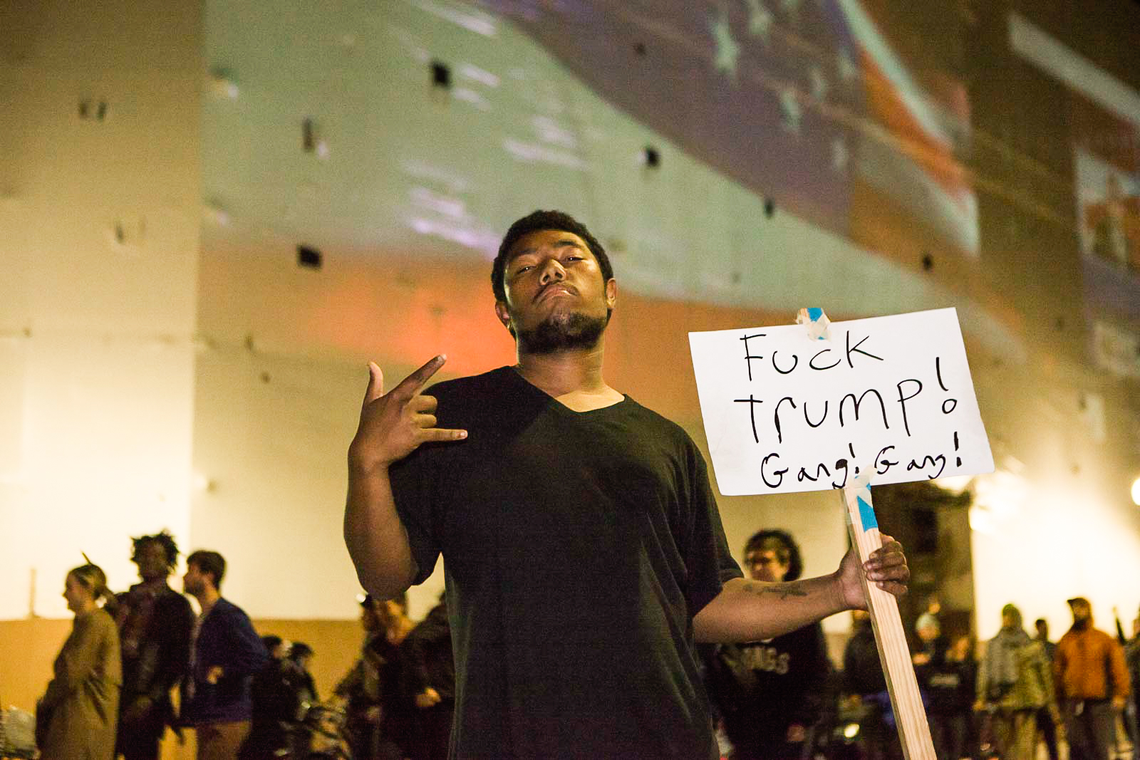 - Protesters vandalize the streets of Oakland to protest Donald Trump winning the election. The crowd began at City Hall with a small group of 15 people and grew to close to 70 people by 1 am. photo by Mary Newman