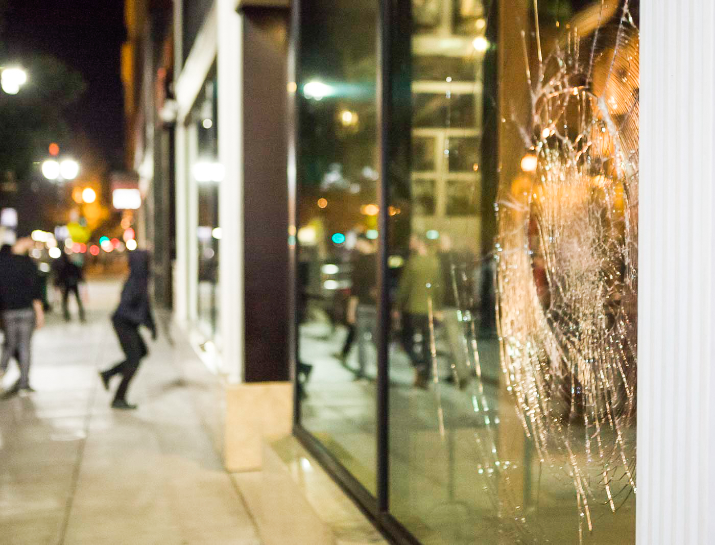 - Once the protestors turned onto Telegraph Avenue, things escalated and they began grabbing anything they could to smash store windows. Photo by Mary Newman