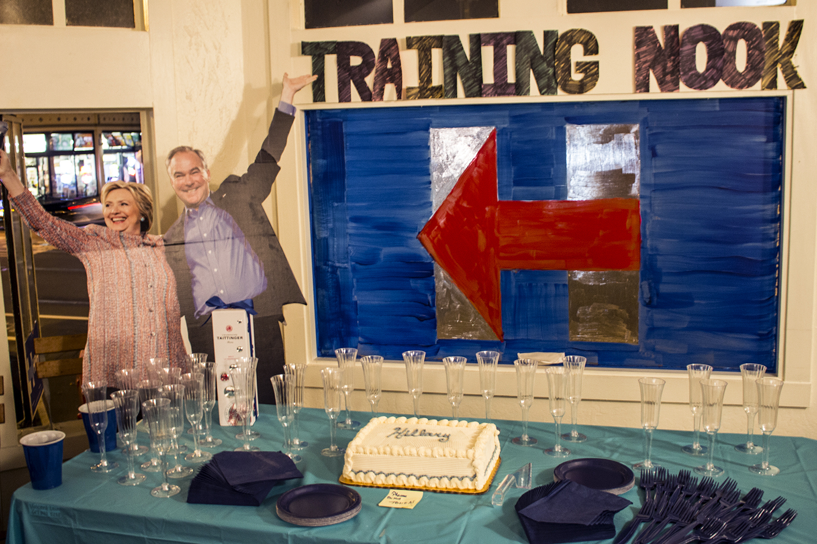 - A cake sits uneaten as the attendees clean up the Hillary for America, Oakland HQ. Photo by Olivia Rempel.