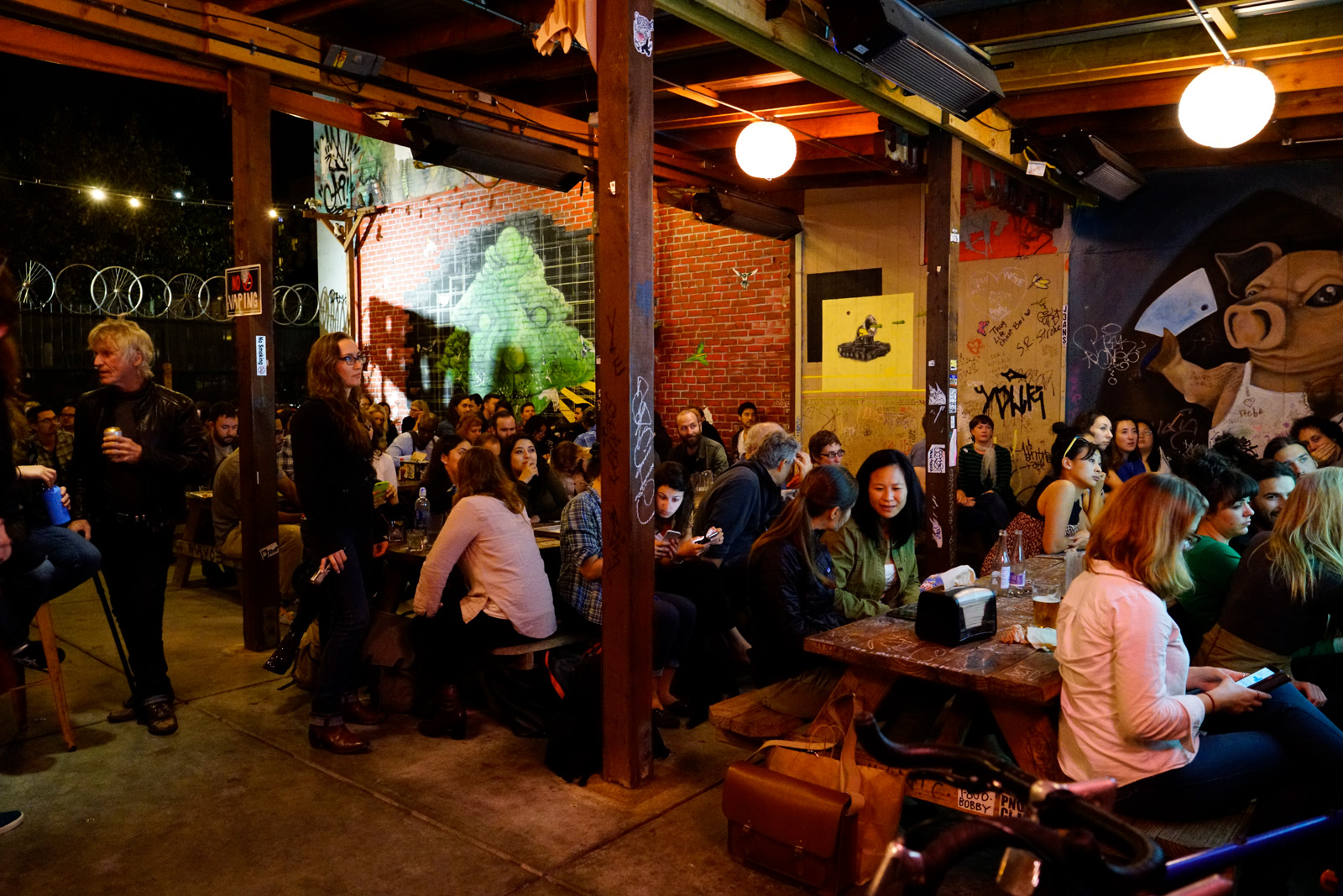 One man stumbled out of the bar and up to a group of women. He apologized to them for the current political outlook. Another bargoer put his hands behind his head and looked up at the sky to say, “What fucking dark days.”