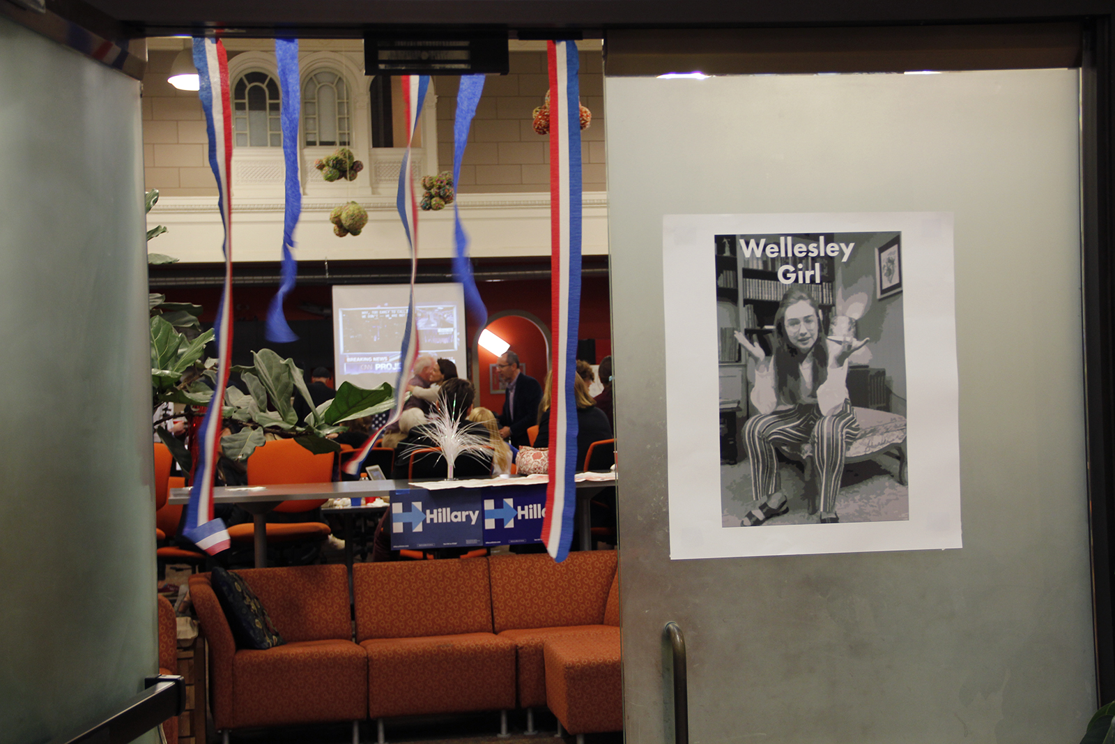- Members of Wellesley’s class of 2001 watch election results for fellow Wellesley alumnae, Hillary Clinton. Photo by Cassady Rosenblum.