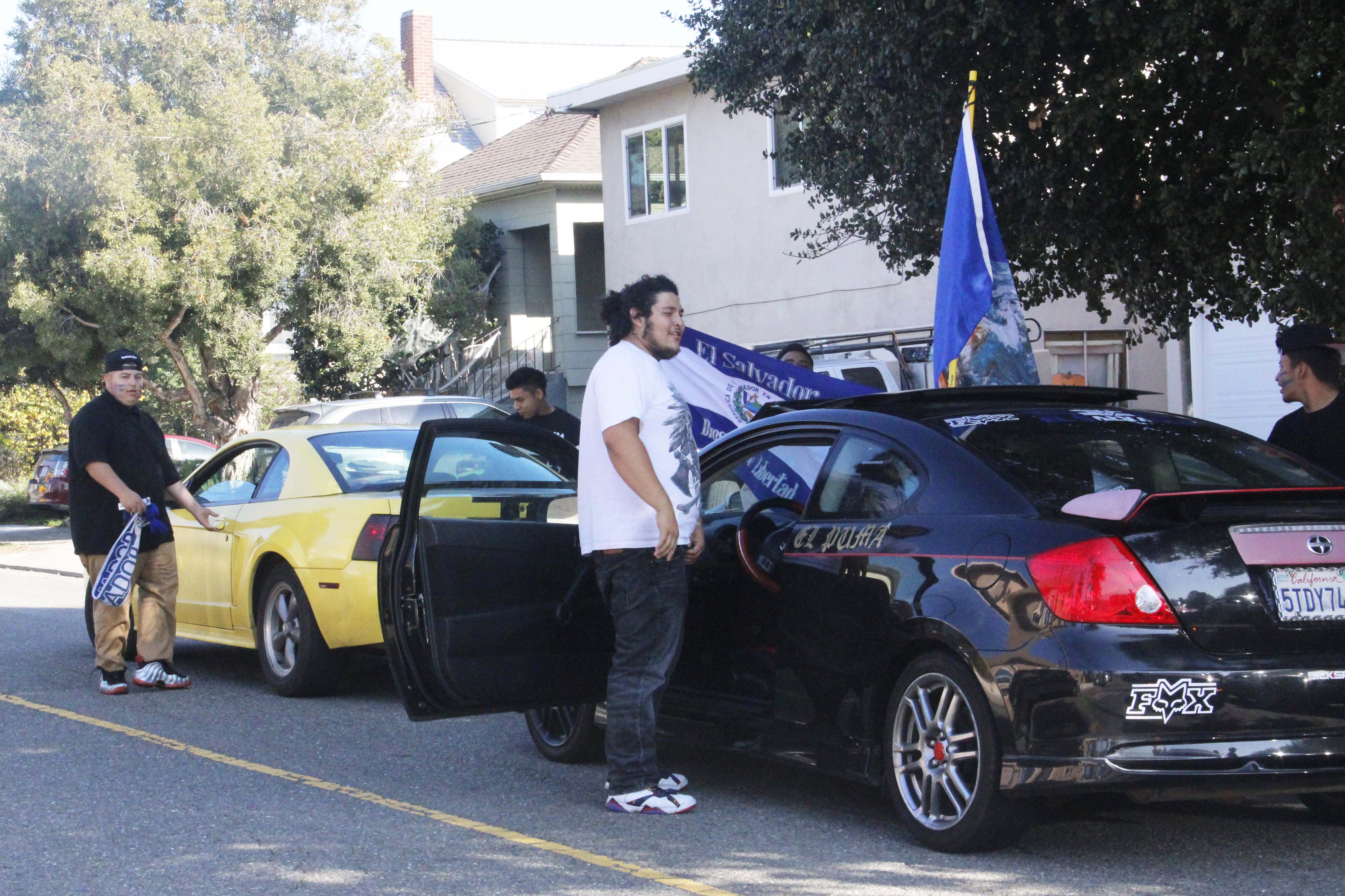 - Latino students drove through the streets nearby Oakland Technical High School with El Salvadorian flags draped out of their windows. “We don’t like Donald Trump. We are fighting for our dreams,” said one student. Photo by Ryan Lindsay