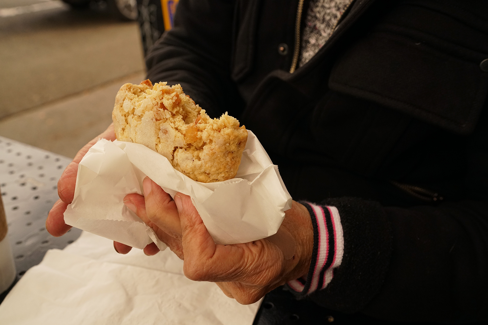 - Celeste’s morning treat of choice: a ginger-pear scone.